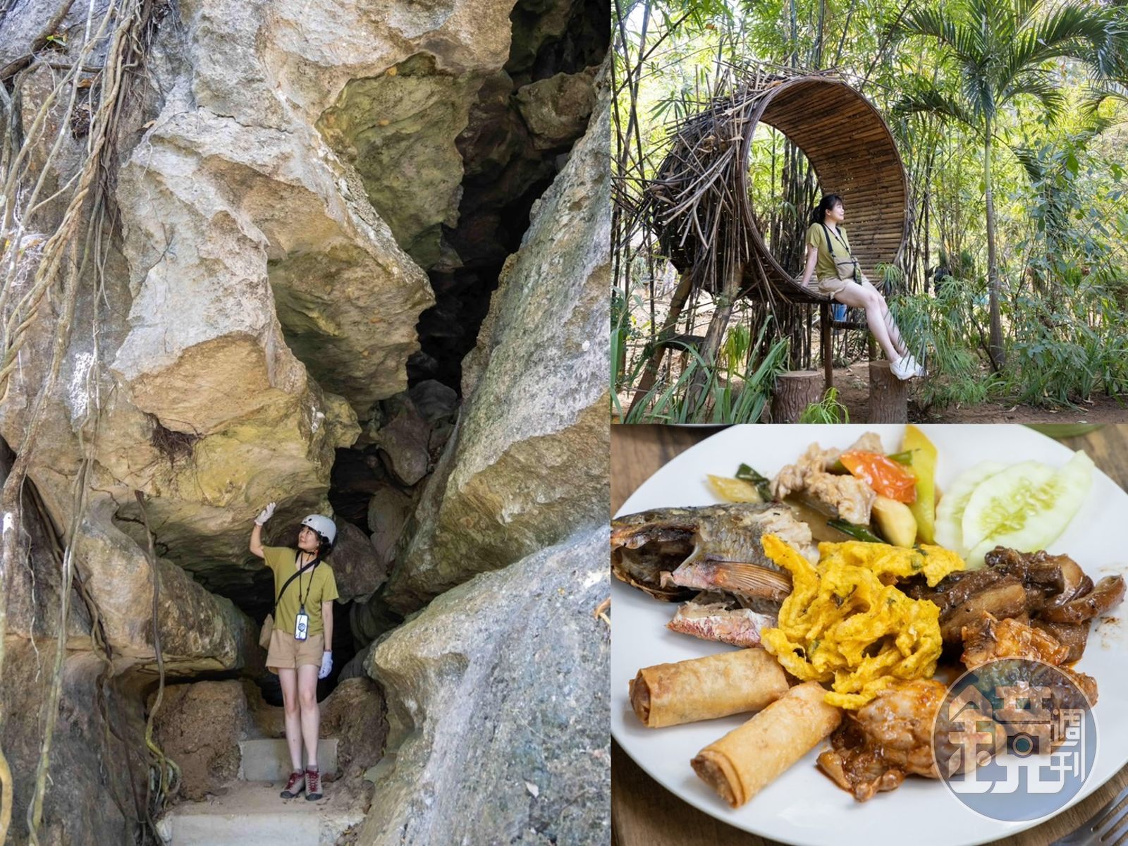 除了體驗菲式自助餐,餐廳後方還有很大一片區域設置了各種可以拍照的大型裝置藝術,如樹洞、巨大的圓形竹編椅等,另外也有設計成大型昆蟲的遊樂設施和鞦韆,很適合用餐後來這裡散散步,享受一下林間芬多精的同時,還能順帶拍一輪特色網美照留念!
