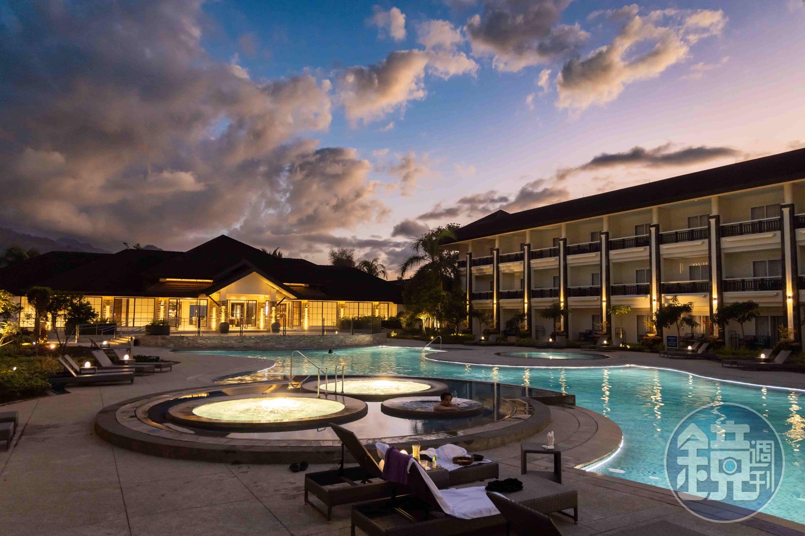 一踏入半開放式的Lobby,就能看見廣闊、綿延的泳池,才剛跳完三個島上岸的心又開始蠢蠢欲動;泳池中間也設置了酒吧,夜晚時刻只剩下昏黃燈光,氣氛相當棒,即使身著泳衣也能在池中來杯浪漫特調為今天劃下句點。