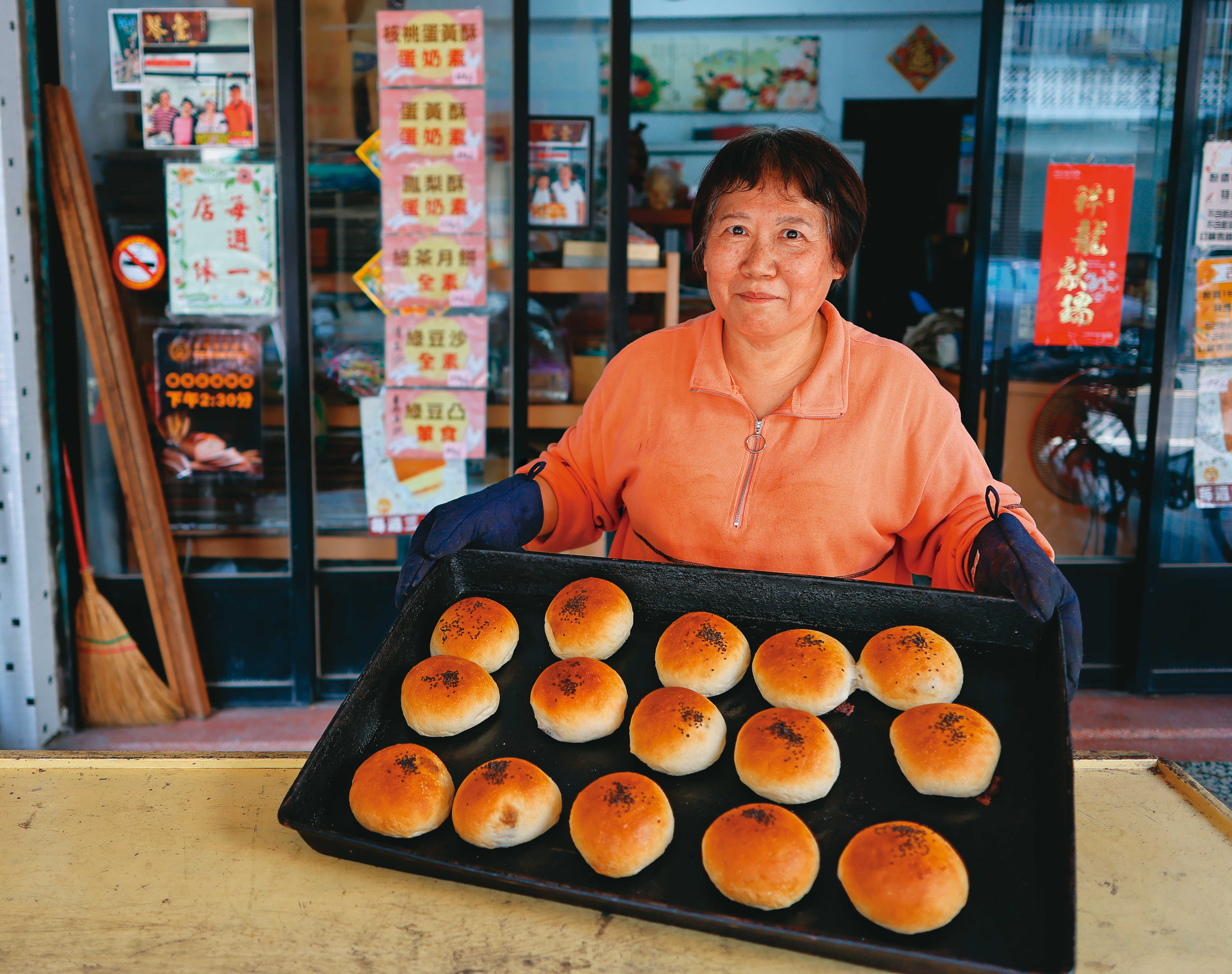 土庫的人口一年比一年少,年輕人都去外地,麵包店卻一樣有5家,生意很難做。10年前,食安風暴爆發,麵包店幾乎垮掉,一直虧,3年虧100萬元,我天天睡不著覺。我跟老公說,把店收掉,我去當看護,他做保全。他不肯。我說那我拿手工回來做,他還是不肯。家裡能賣的都賣了,我結婚的金子,小孩滿月親友送的金子,甚至樓上3尊神明脖子上掛的金子,全部賣掉。