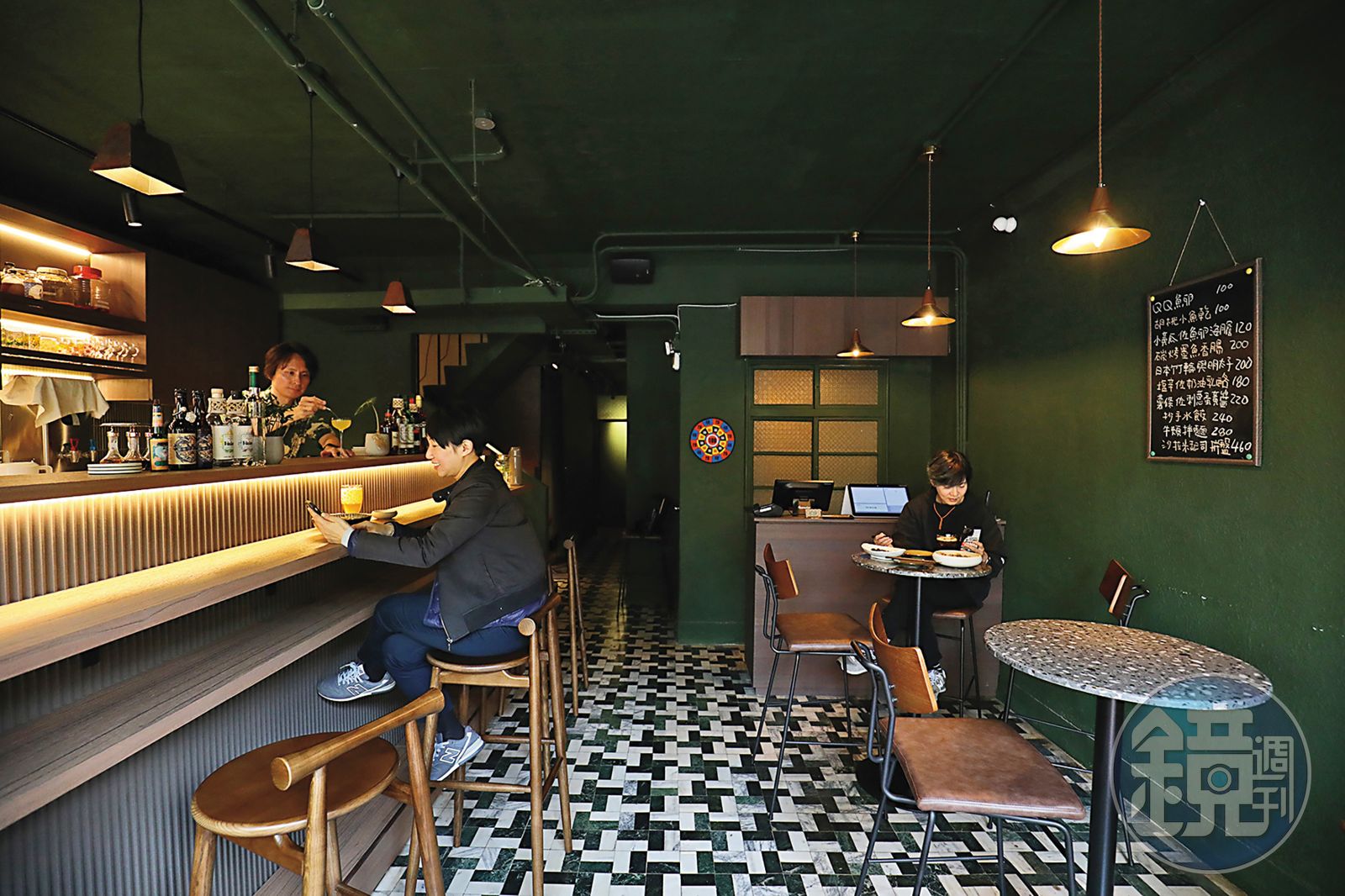 以門牌號碼與店門兩棵桂花樹為靈感的「眷村19號」,使用義大利Aperol酒浸泡桂花,並加入少許葡萄柚利口酒,充滿氣泡感的酒體很輕盈,不僅酒精度不高,價格也很親民。小朱說,希望AURA可以扮演眷村的客廳,讓路過的人都能輕鬆地走進來小酌,而且不必擔心酒醉或大傷荷包。