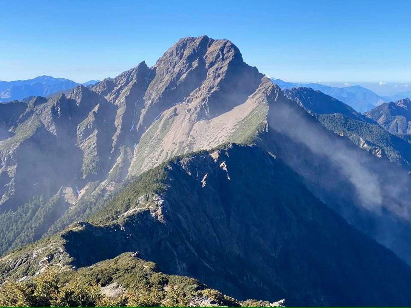 鄭明典貼出兩張玉山主峰照顯示,主峰西側冒出煙塵。鄭明典分析,這代表玉山主峰西側受地震影響,有小規模崩塌,煙塵緩緩升起,而且最近還會有餘震,他呼籲民眾「建議暫時不要往山裡走」。