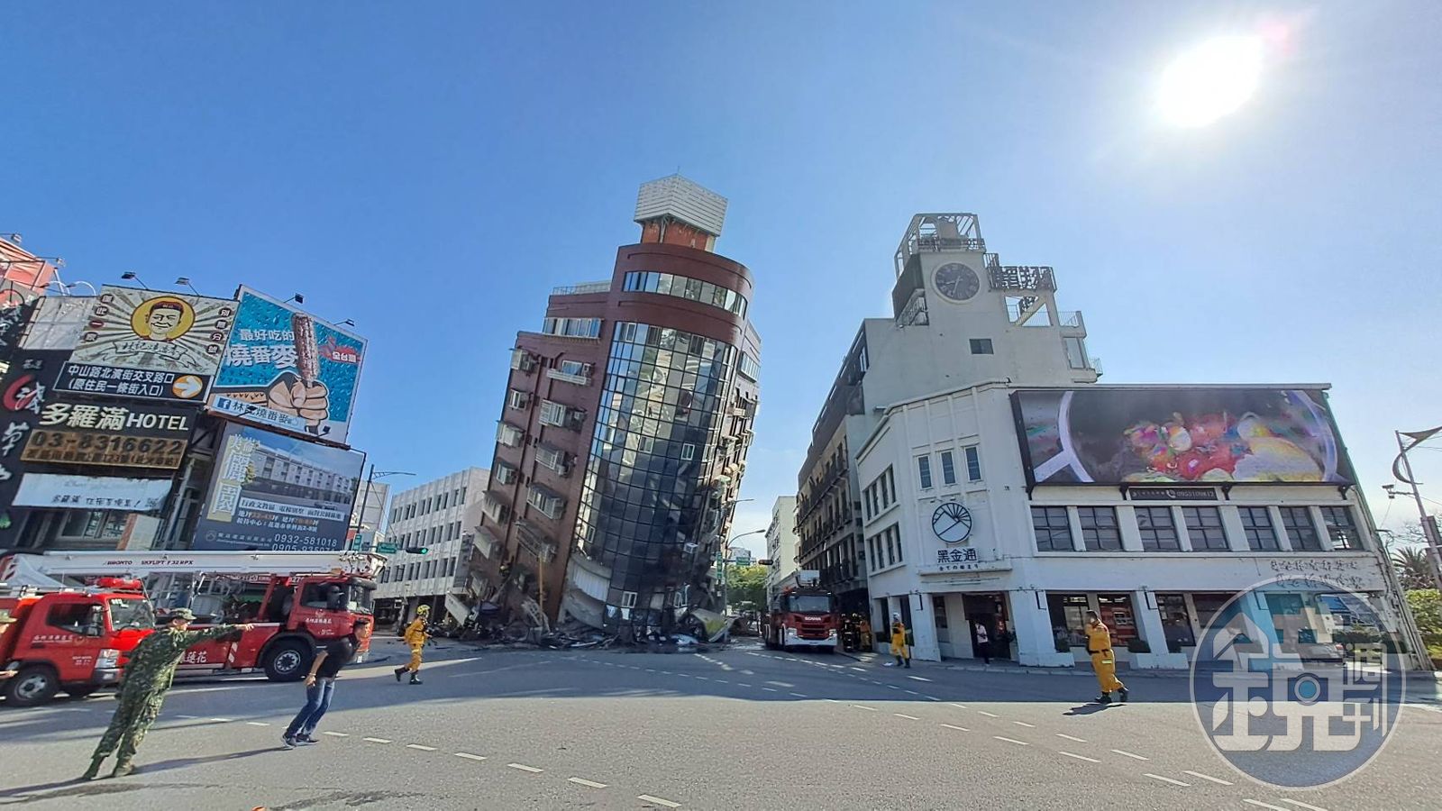 這棟位在花蓮軒轅路上的天王星大樓,屋齡約38年,8層樓建築,大多為套房格間。花蓮警消在震後第一時間證實,天王星大樓傾斜相當嚴重,有多人受困。警消獲報後趕抵現場救援,隨即疏散住戶,並急升雲梯車協助高樓層住戶脫困,但由於不少住戶門窗都加裝鐵窗,警消要先破壞鐵窗再進入。
