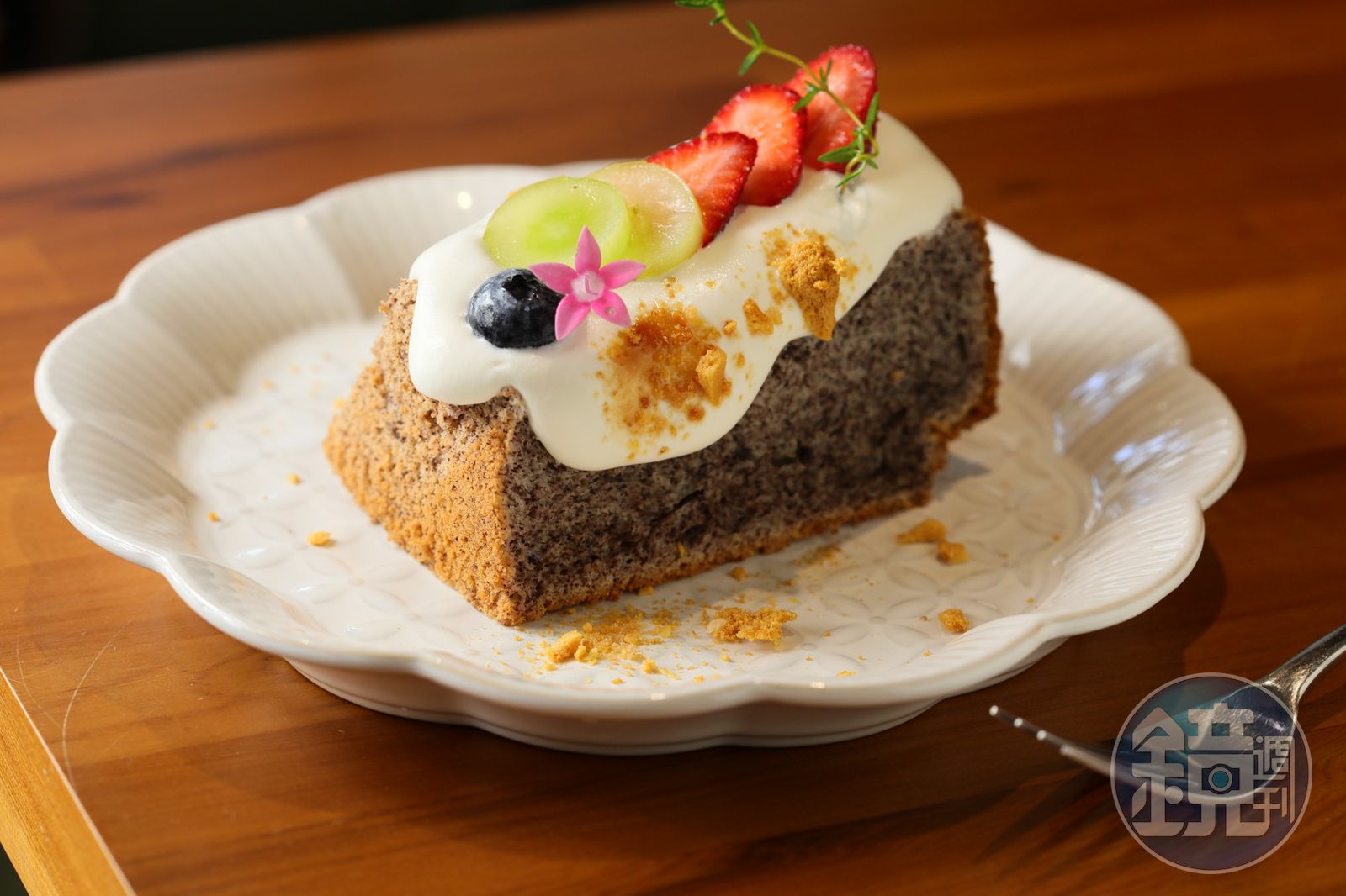 將丈夫種植的「青松米」作為店裡各種料理食材來源也是特色之一。「米鬆餅」以純米製作加上進口的奶油,烘焙出外表酥香,內部口感也因為純米而帶點Q感,單純就很美味;「青松紫米戚風蛋糕」則是以純紫米製作,蓬鬆濕潤,配上甜度適中的奶油,嘗起來無負擔。