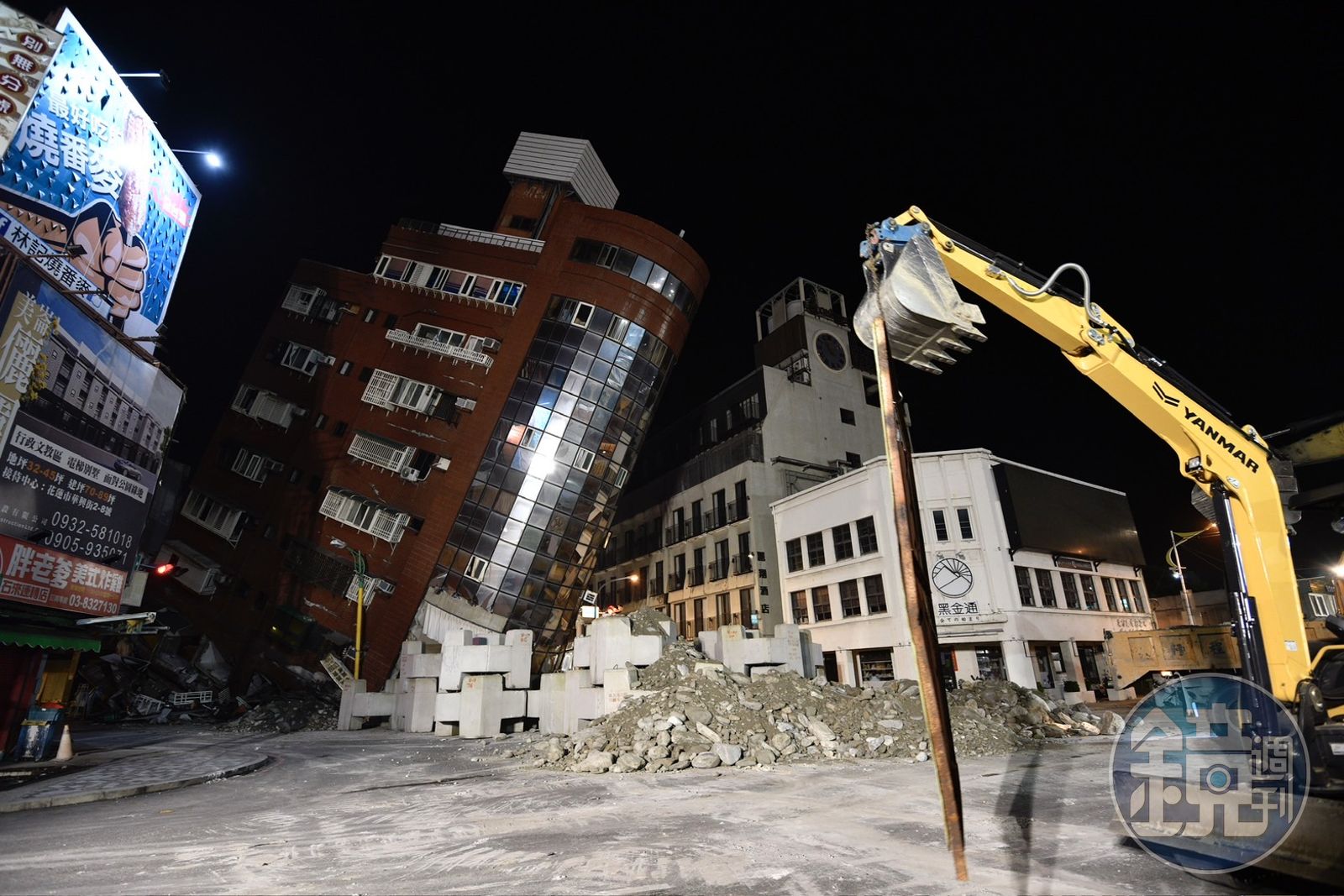 沒想到昨天清晨7點58分發生芮氏規模7.2強震,仍該大樓震得嚴重傾斜,整棟建物搖搖欲墜,目前下方由消波塊支撐,隨時可能轟然坍塌;由於受困在大樓裡的生還者陸續獲救,到了昨晚9點12分,最後一名罹難者遺體被運出,何時拆除這棟隨時可能倒塌的危樓,成為民眾關注焦點。