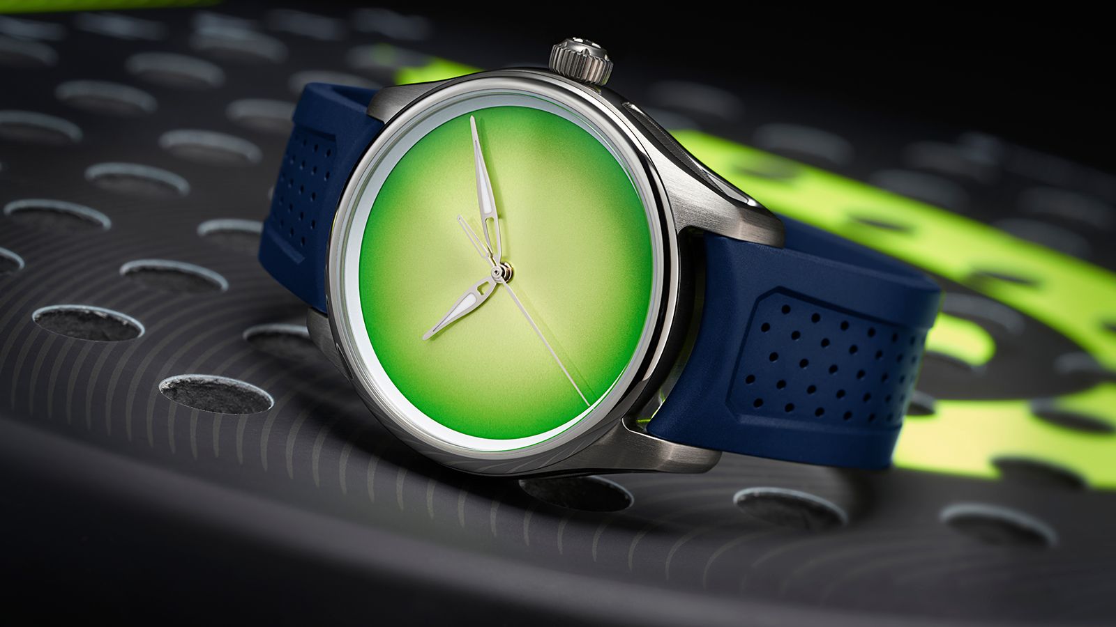 今年MOSER在錶展前夕發佈了這款Pioneer Centre Seconds Concept Citrus Green,面盤的顏色無疑是它最吸睛的地方,過去MOSER推出過許多不同色調的綠色,Matrix Green極光綠、Cosmic Green宇宙綠、Lime Green萊姆綠,這次則研發出Citrus Green柑橘綠。柑橘綠新色帶了點螢光感的搶眼色調非常的吸睛,配上Pioneer的殼型和指針的設計,即使面盤上沒有Logo,也可以一眼就認出是MOSER的手錶。這種辨識度需要許多微小的細節去累積,就好像唱歌好聽的實力派唱將很多,但要被認定為天王天后等級的,除了唱功之外歌聲還要極具特色,才能讓人光聽聲音就認出歌手是誰。