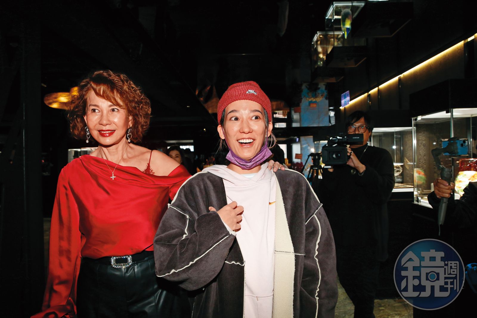 頂著老公成為全民公敵的壓力,孟耿如(右)素顏出席周丹薇(左)的古焰鎏璃創作展,一切「無可Phone吿」。發布時間:2024.04.13 05:58 臺北時間