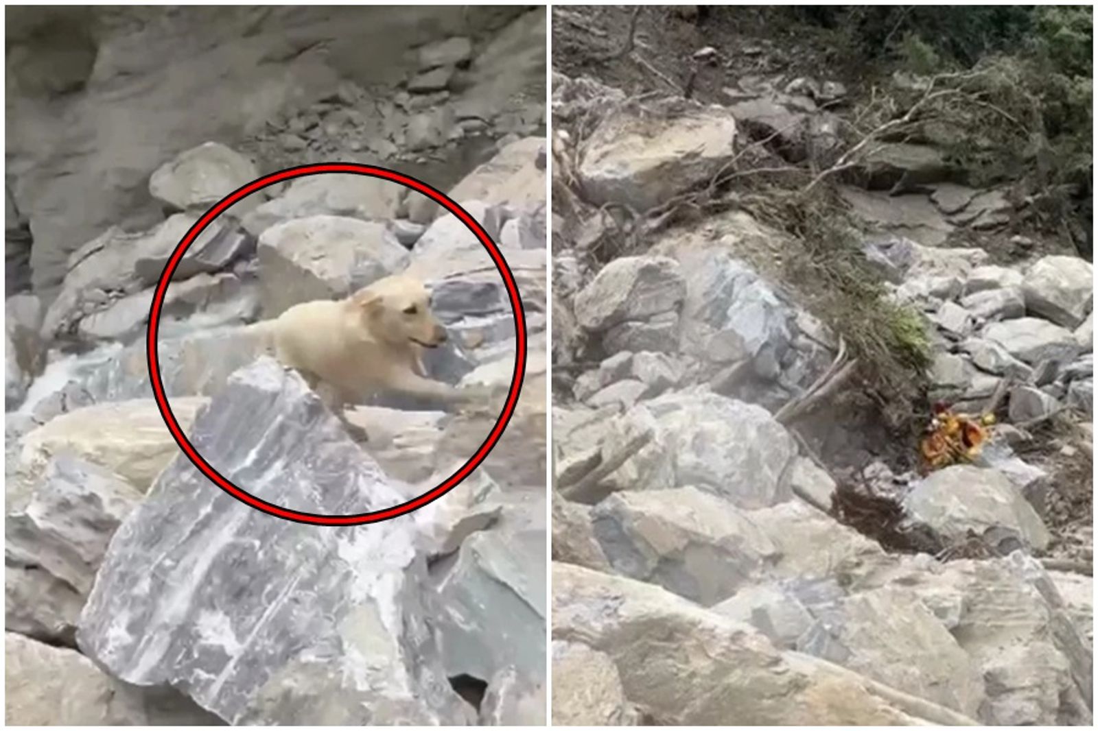 據了解,領犬員邱楷紘與搜救犬Fancy今下午接近2點時,於砂卡礑步道2.2K搜救時,驚遇崩壁發生落石,起初是小石塊,未料,事後甚至有車子般大小的石塊從上方滾落,嚇得邱楷紘急喊喚「Fancy!Fancy!快過來」,起初Fancy也受驚愣住,所幸短時間回復反應跑回邱楷紘身旁。