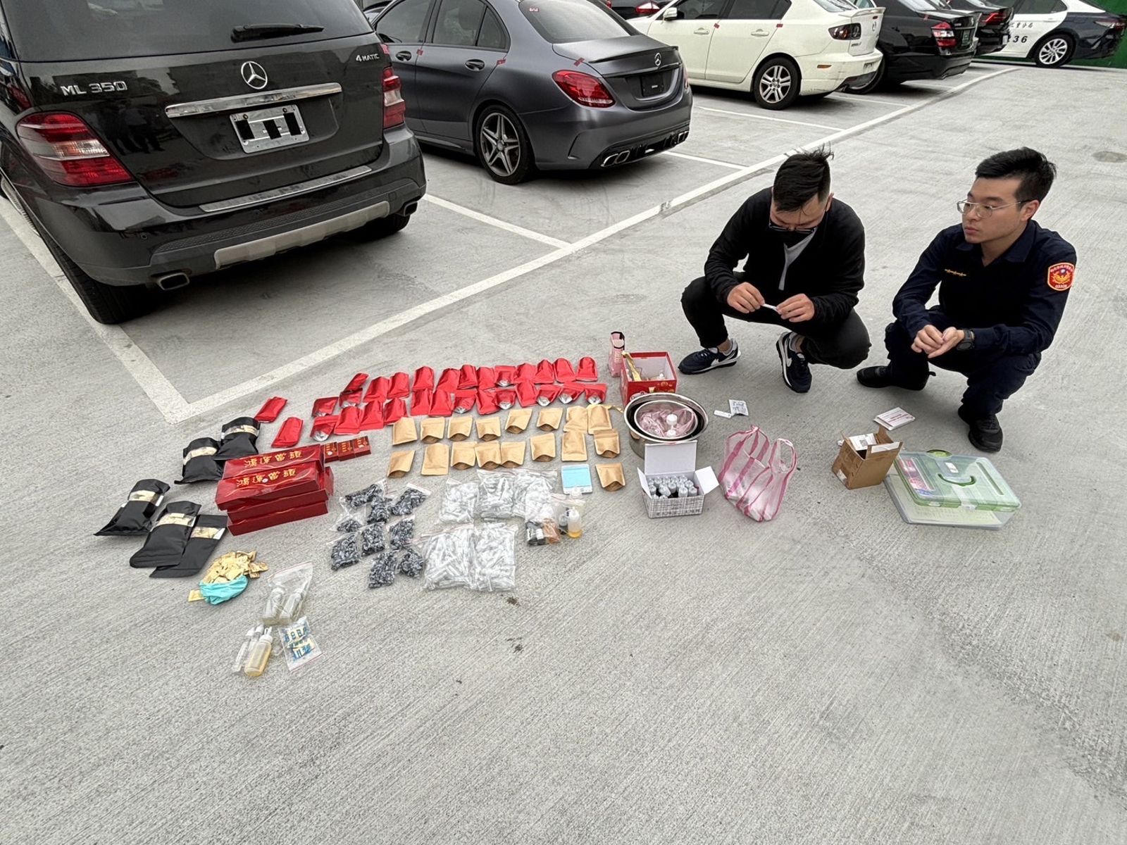 警方表示,陳男駕駛懸掛AB車牌的賓士權利車,行經重陽路四段,巡邏警攔車盤查,在後座發現一只電子油煙,要求陳、黃兩人下車受檢,要求兩人打開後車廂確認車內物品時,因兩人不願配合,員警通報線上警網到場支援。