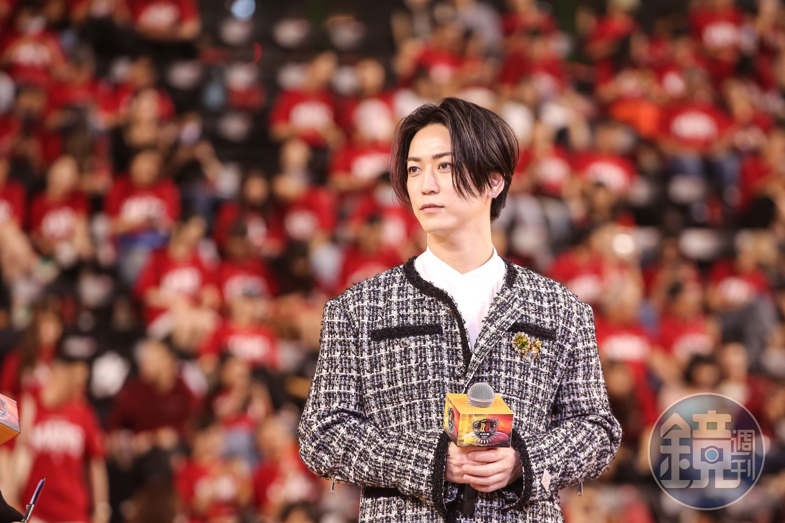 最後龜梨和也更熱情地用中文大喊「謝謝!」充滿親和力的模樣也再次引發全場尖叫歡呼,本場賽事更吸引滿場15,600名球迷到場觀賽。龜梨和也明天將結束三天兩夜《怪物樵夫》宣傳行程,返日班機不公開。