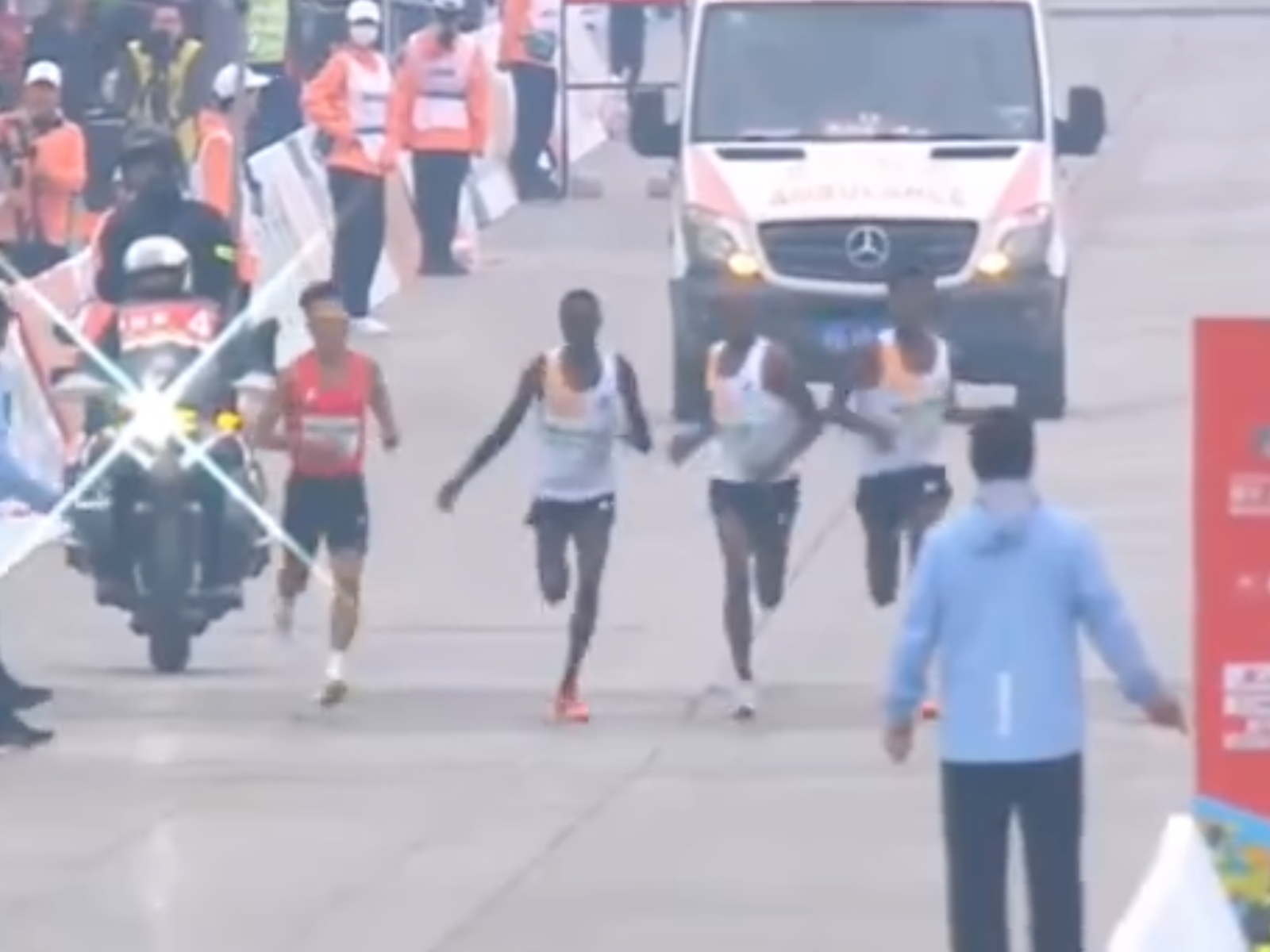 北京半馬日前爆出非洲選手放水爭議,當時與中國選手何傑並肩而跑的為肯亞的選手凱特(Robert Keter)、姆南加特(Willy Mnangat)以及來自伊索比亞的海魯(Dejene Hailu),但3人在終點線前卻減速,最終由何傑奪冠。