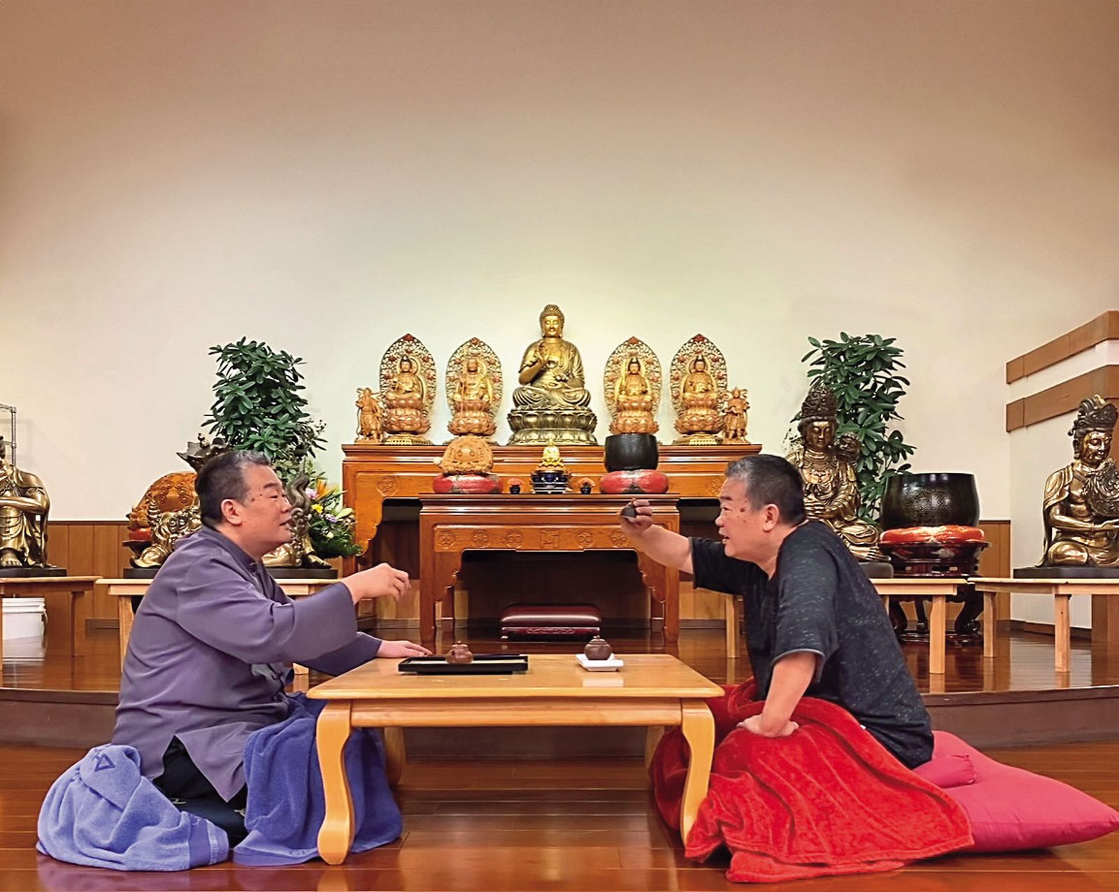 2000年,緣道觀音廟落成,香火鼎盛,李善單將「弘法」足跡拓展至海外,實際卻是逸樂行程。在大緣精舍工作期間,A先生必須24小時待命,因不犯錯又寡言,獲得李善單信任,有時賭博會帶A先生隨行。「第一次去,精舍幹部(教授師)給我百家樂玩法的連結以及李善單拿到什麼牌,要喊什麼口號的命令,叫我要記熟,還強調是祕法,不可外洩。若贏錢,他會帶女信徒吃米其林餐廳、買衣服跟奢侈品。輸了就關在總統套房不許大家出門,要大家找錢,隨時監控找錢進度,若不順會罵髒話、摔椅子、要女人替他按摩。」