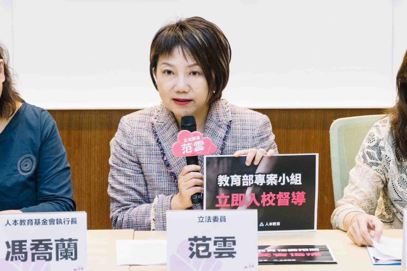 立委范雲及新北市議員顏蔚慈接獲陳情,今日陪同該名女學生召開記者會,嚴正呼籲「猥褻性侵零容忍」。顏蔚慈沉重指出,「受害者當時未滿16歲,呂男的行為不僅是性騷擾,更涉嫌猥褻最弱勢、最無助的孩子」,呂男這樣的惡質狼師至今竟仍在校園教書,顏痛批:「離譜至極。」