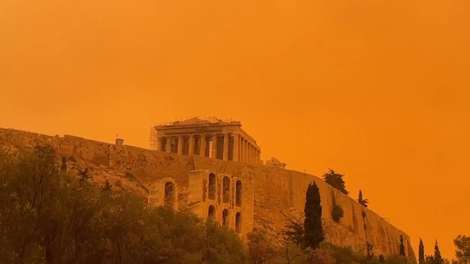 從本週二起,來自撒哈拉沙漠的沙塵越過地中海,遮蔽衛城等雅典知名地標。