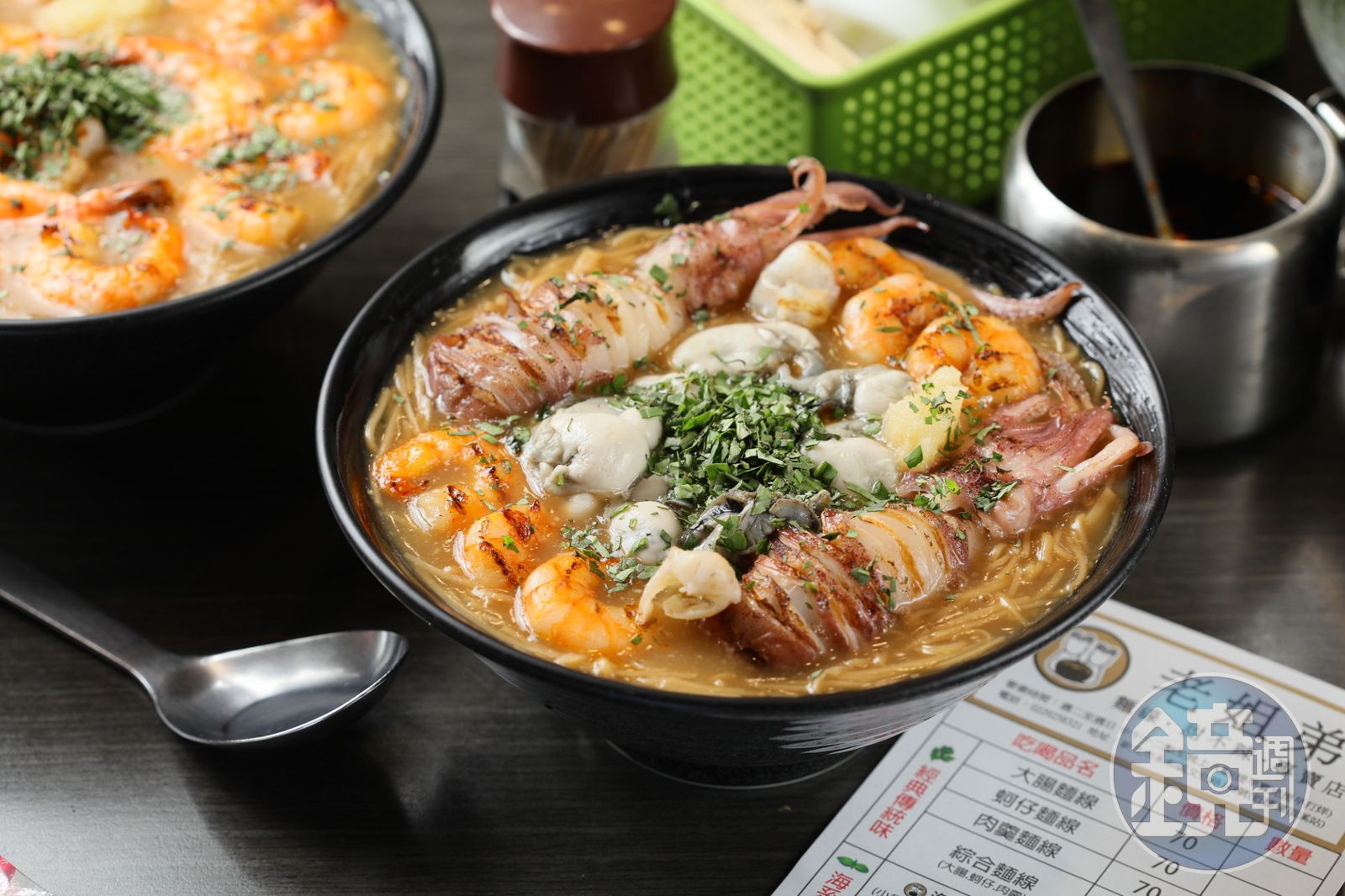 因著對食物的敏銳度,劉書豪負責發想,再和姊姊一同討論、嘗試,兩姊弟將傳統台灣小吃,加入新意,「海底麵線」海鮮類的小卷、白蝦、鮮蚵全是產地直送,小卷和白蝦並非汆燙處理,而是用鑄鐵鍋先煎過,入湯後成為提味的精隨,原來的柴魚湯頭,多了一份微微焦香,而蚵仔不再是混入麵線的眾多配角之一,每個新鮮的食材都是麵線的靈魂,鮮味更是不在話下。