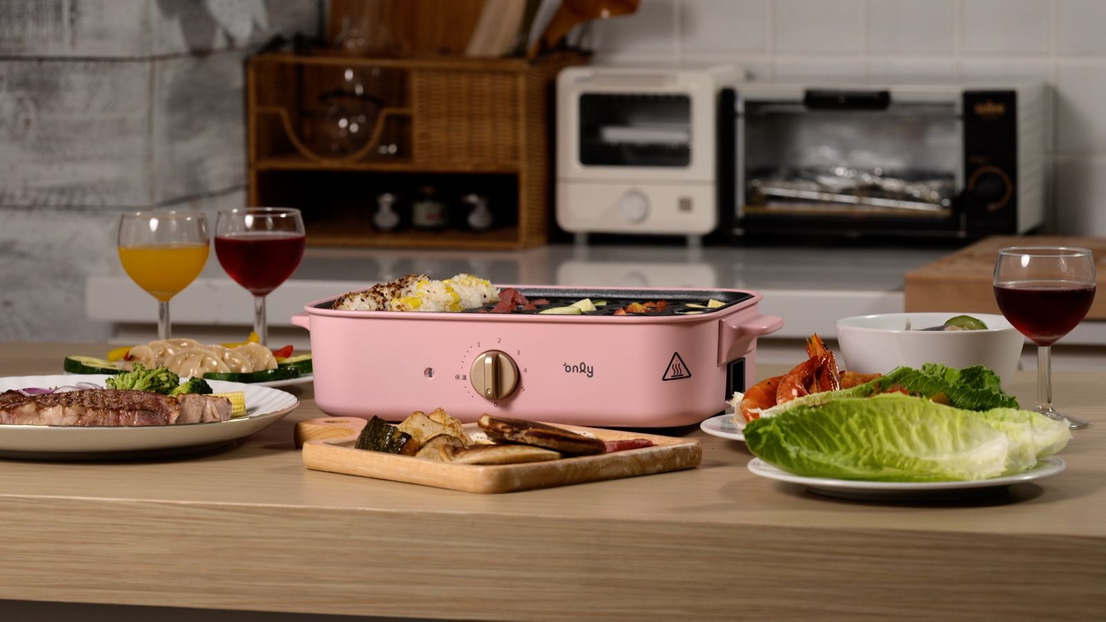 不僅如此,only多功能不沾復古電烤盤直接端上餐桌,不占空間,全家人可以邊煮邊吃,不怕食物涼掉;輕巧、時尚的復古外型,搭配最近推出的超柔美新色「赫本粉」,亦是餐桌上的美味「嬌」點!