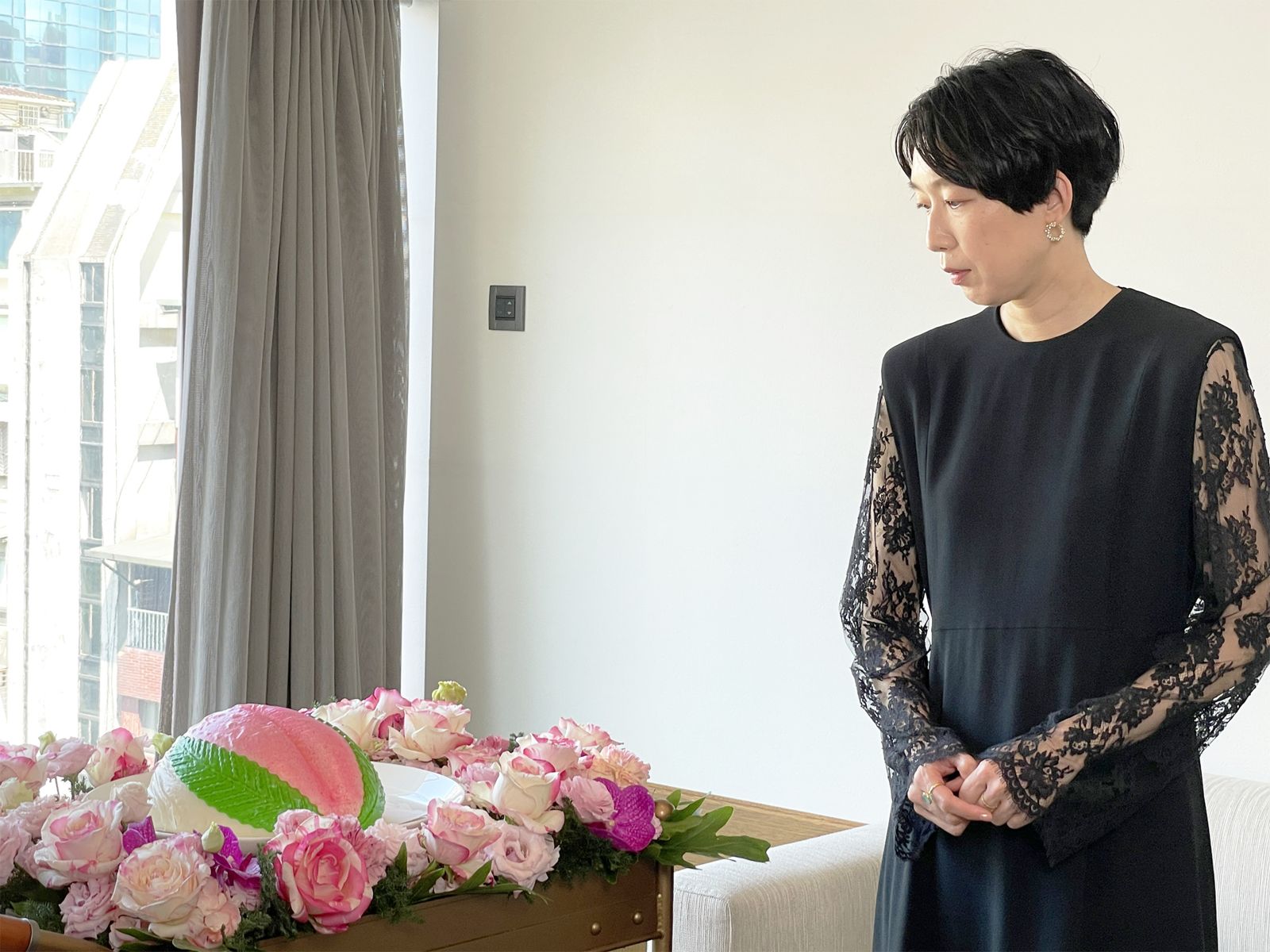 江口德子看到巨型壽桃打開後還有許多小壽桃,讓她忍不住少女心爆發,大聲尖叫說:「真的好可愛!」更可貴的是台灣工作人員特地請國寶級畫師顏振發畫下這位「獨活女帝」的巨型海報,寫下《獨活女子的守則4》2024年台灣篇,她想起去年來台拍攝時取景的台南全美戲院,小心翼翼詢問:「是老師畫的嗎?」台北電影節最近剛宣布2024年「卓越貢獻獎」將頒給這位從業超過50年的71歲電影看板畫師,江口德子得知可以帶回這份大禮後表示:「謝謝老師,我好開心!」