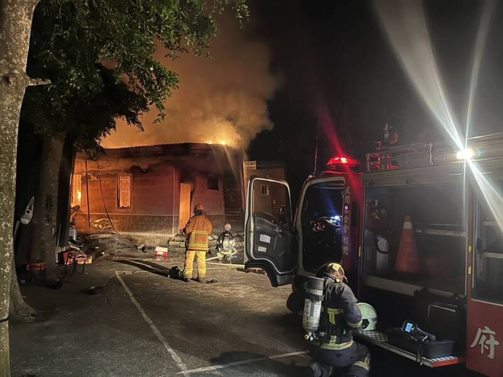 消防人員抵達現場時,只見起火的小木屋已經陷入火海,目擊者指出,幸好住在隔壁2棟小木屋的4名移工,在火勢延燒之前倉皇逃出,而此時,火舌也向隔壁房蔓延,指揮官立刻下令同時佈下多條水線,強力灌救、降溫,約半小時後控制火勢。