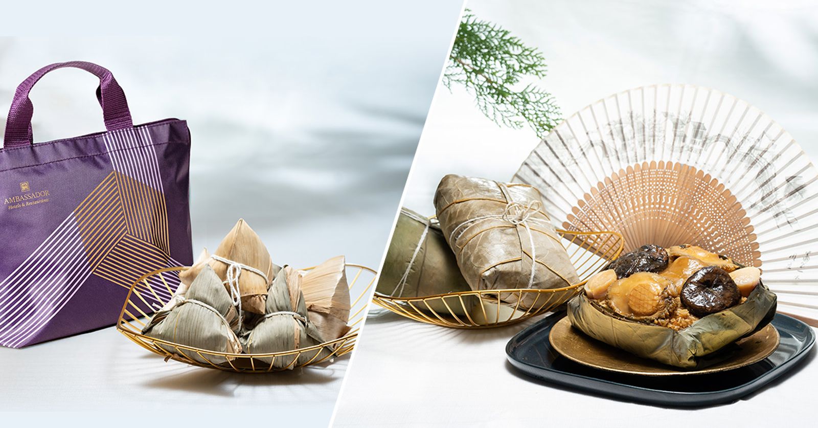 「頂級鮑魚粽」精選口感Q彈南非活鮑及膠質豐厚的花膠筒,另外將肝腸、臘腸經過爆香逼出油脂後與老糯米拌炒,並加入花菇及北海道干貝,層層粽葉緊緊包裹著口感一致的海陸珍味,所有頂級鮮味全被米飯吸收,香軟糯米飄逸淡淡荷葉清香,完全吸收肝、臘腸的鹹香精華。「國賓嚴選干貝XO醬」嚴選各式食材,有甜度較高的日本干貝、金華火腿與其他香料等,細火慢炒製作而成,無論是拌麵佐飯或搭配其他菜餚,皆能增添微辣的口感,不僅香氣十足,鹹味與辣味更是平衡得恰到好處。