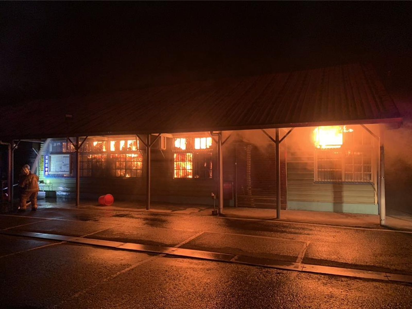 新竹縣消防局長陳中振則說,資源莊冰店燃燒面積約300平方公尺,財損初估約100多萬元,初步排除人為因素,但發現放置4台大型製冰機的區域被燒個精光,木造梁柱被燒到碳化坍塌。
