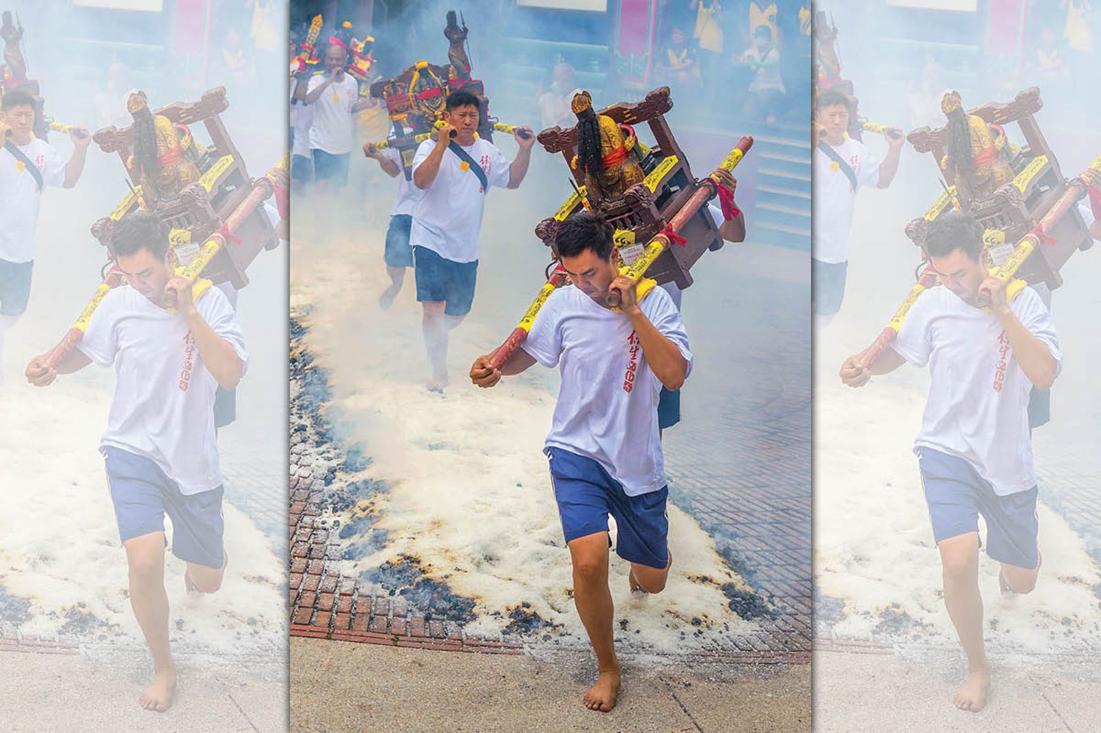 此外,保生文化祭期間,民眾也可一窺保安宮流傳百年的「過火」儀式,「力士」們會扛著神像赤腳走過高溫火炭,祈求平安。