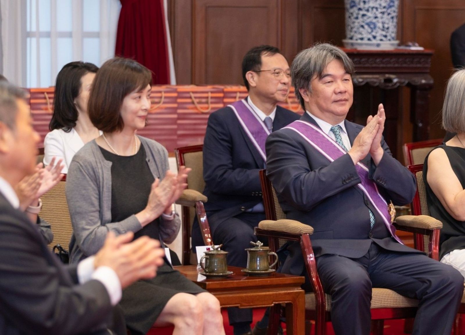 蔡英文昨頒贈衛福部長薛瑞元、前任部長陳時中「二等景星勳章」;衛福部次長王必勝、周志浩、中央健保署署長石崇良獲頒「三等景星勳章」;疾管署長莊人祥、副署長羅一鈞獲頒「四等景星勳章」。