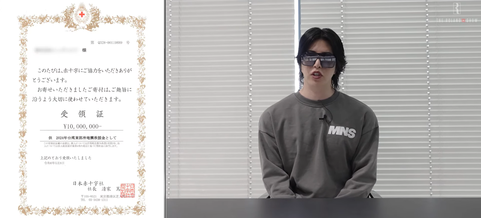 羅蘭今日更新YouTube頻道,提到雖花蓮地震已過了1個月,但餘震不斷,還有許多人在避難中度日,為了協助賑災,他決定捐款1,000萬日圓,是因為與台灣有著深厚的緣分。