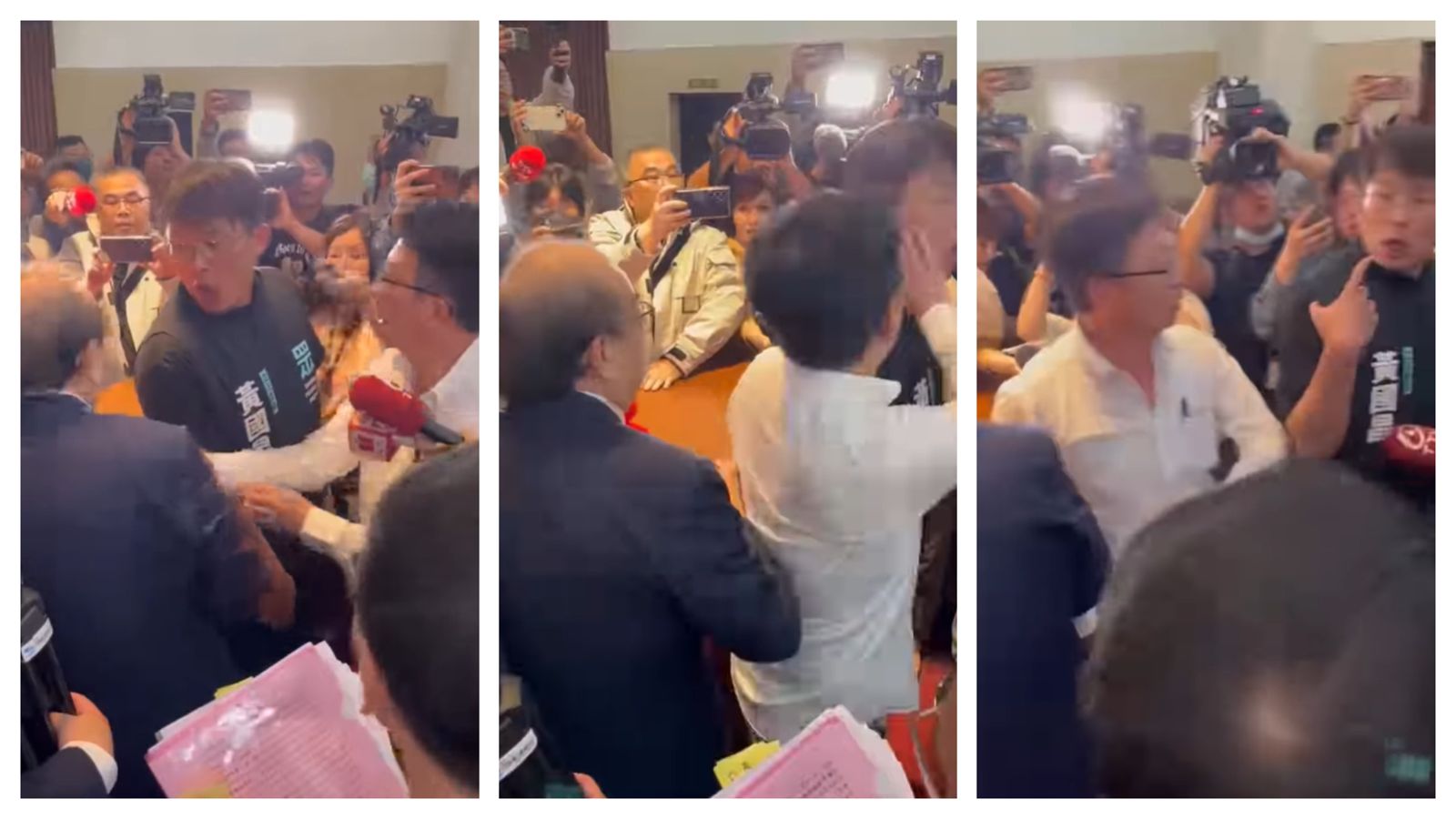 此時柯建銘恰好在黃國昌身後簽到,柯被媒體問到遭黃質疑民進黨連小學生都不如,柯對此未有回應,卻遭黃再嗆「可以這樣插隊喔?」兩人因此展開對罵。眼見兩黨總召互嗆,一旁的郭國文立刻上前擋在兩人中間,高喊「你是在大聲啥!口水不要一直噴」,更出手撥開黃的臉,讓黃爆氣「我沒有動手喔!剛剛誰動手!你打人哦」最後雙方在藍委萬美玲制止下分開。