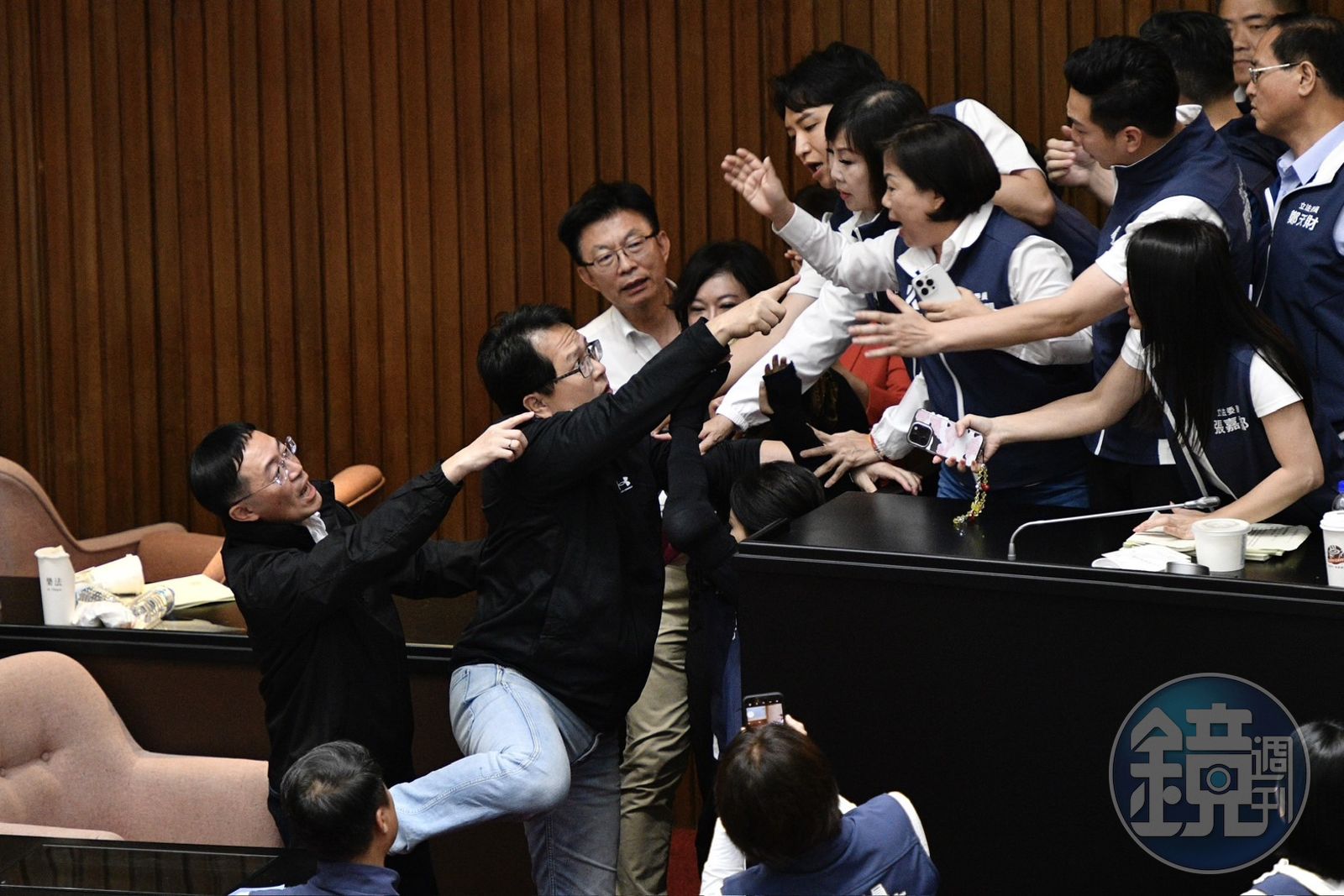眼看議會立委們肉身激戰越演越烈,黃捷直接在threads發起「現場衝突側記」,除了指控徐巧芯帶一堆違禁品、作勢勒脖,馬文君把林淑芬的臉、手及脖子抓到流血,還爆料張啟楷「跑來吃我們黨團的補給糧食」。