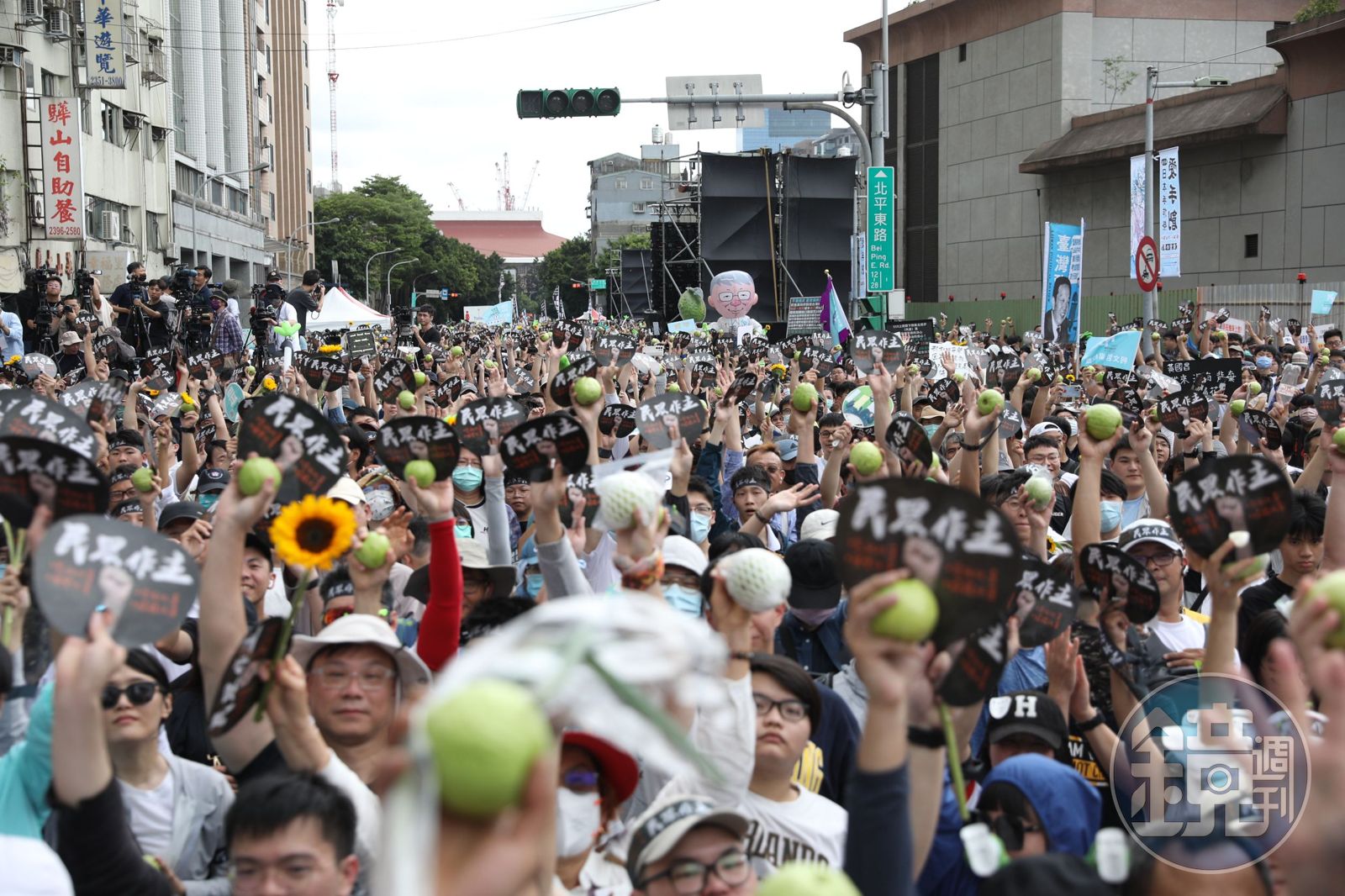 【圖輯】民眾黨519草根包圍民進黨黨部 抗議群眾舉芭樂高喊「堅持改革」