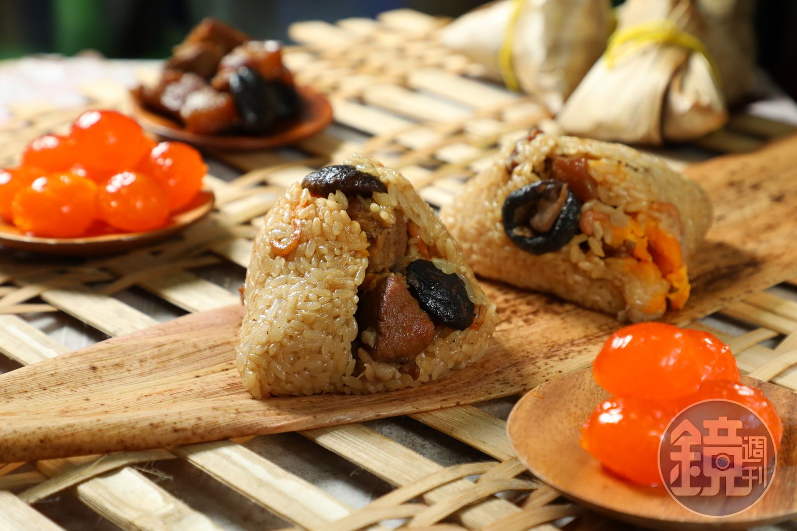 外婆的肉粽屬於北部粽,第二代媽媽開始製作南部粽,第三代女兒簡荷書笑說,客人吃完最常說:「想起阿嬤的味道。」因為阿嬤總是給家人最多最好的配料,御皇油飯的粽子分量比市售大顆,粽葉還必須特地從南部訂購大張的竹葉才夠包,北部粽有香菇、三層肉、菜脯及蛋黃;南部粽則多了花生、自己煸的豬油、泡米酒再烤過的鴨蛋,配料堅持自製,也是外婆時代就有的心意。