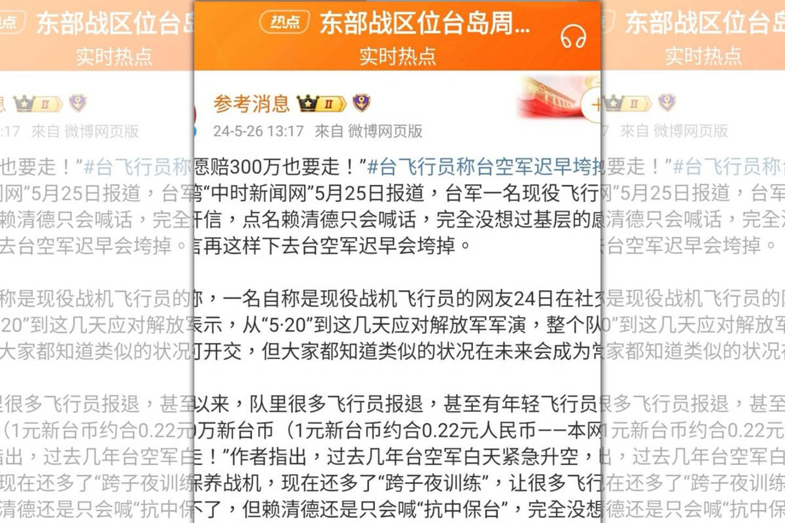 數篇題為「給賴總統的一封信」、「我的飛官老公太難了」等貼文,指控是賴政府挑釁中共才造成軍演,而台灣的空軍弟兄和眷屬甚至為此倦勤或表達不滿等。而經過安全單位追查,確認相關貼文者的從身份到內容,悉數來自杜撰,而結合一條龍式的傳播途徑,也是典型的認知操作,這樣的認知內容,在軍內引發各種憤慨和訕笑。