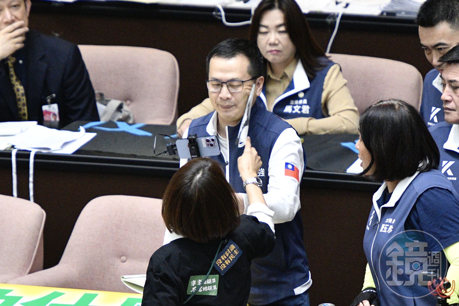 邱議瑩接著補充,《再生醫療法》原本就應排在17日審議法案的第一案,但因藍委洪孟楷在程序委員會擋下,今早又用很嘲諷、輕蔑的態度處理,下午羅智強又白目的在直播中再來挑釁一次,令她忍無可忍,才朝羅智強的臉拍下去,然後,「徐巧芯、陳玉珍就過來,我的衣服就被撕破了」。