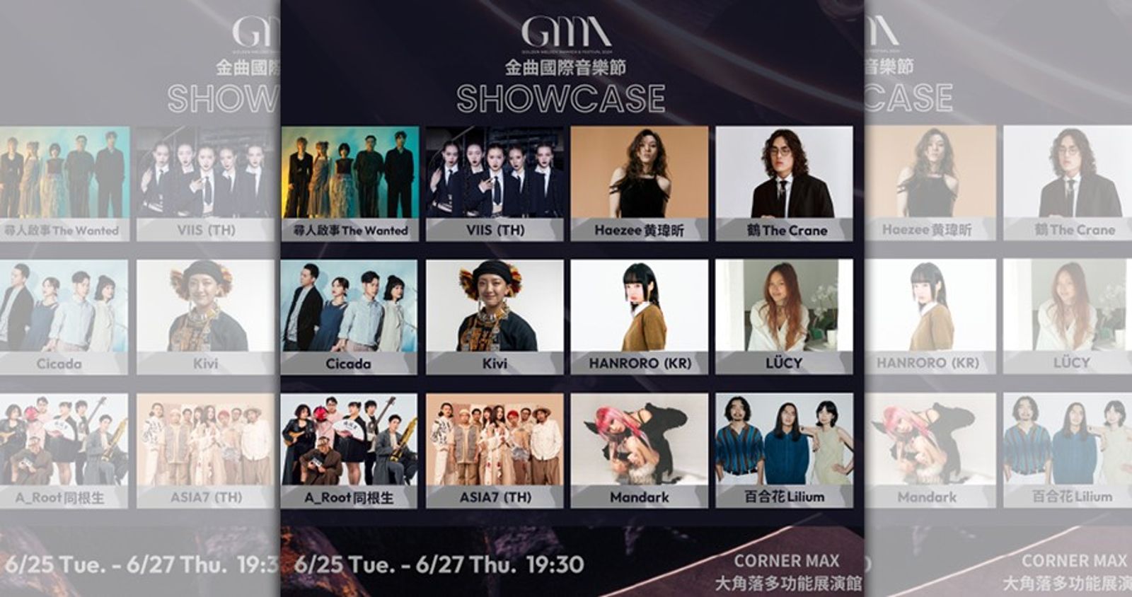 6月26日則由曾入圍演奏類最佳專輯製作人獎的Cicada揭開序幕,搭配三位實力派女聲,分別是曾入圍最佳原住民語歌手獎等三項大獎的Kivi、曾入圍最佳新人獎的LÜCY,以及獲韓國流行音樂獎年度新人獎和最佳現代搖滾歌曲獎提名的韓國歌手HANRORO。