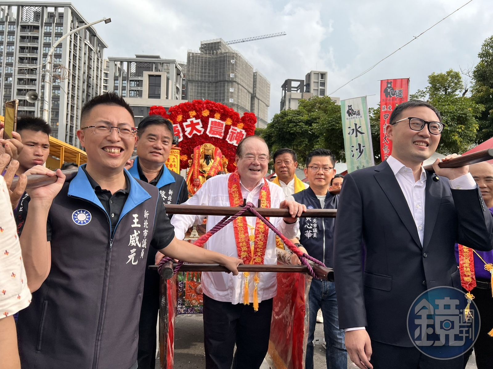 不少民代也前來扛轎,包括國民黨立委廖先翔,新北市議員黃心華、蔡健棠、王威元等人,也有部分民眾黨民代參與。此外,6月1日先嗇宮將舉辦迎請神農大帝及270尊神遶境三重地區,挑戰金氏世界紀錄,值得關注的是,被外界點名挑戰下屆新北市長的熱門人選,包括新北市副市長劉和然、台北市副市長李四川均受邀出席,二人有機會同框。