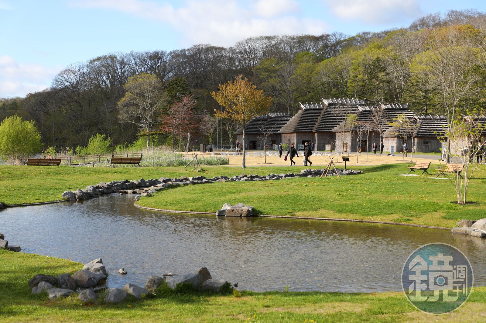 全場域分為六大部分,在「國立愛努民族博物館」裡有針對語言、信仰、歷史、生活、謀生方式的詳盡展出;「傳統的Kotan村落」重現早年茅草屋村落的真實居住面貌。不同區域的愛努族就地取材蓋屋,庫頁島的愛努族用樹皮、旭川則利用竹子。這裡還能免費體驗穿上愛努族的傳統服飾,布料上的手工刺繡圖騰,部分有趨吉避凶的意涵。