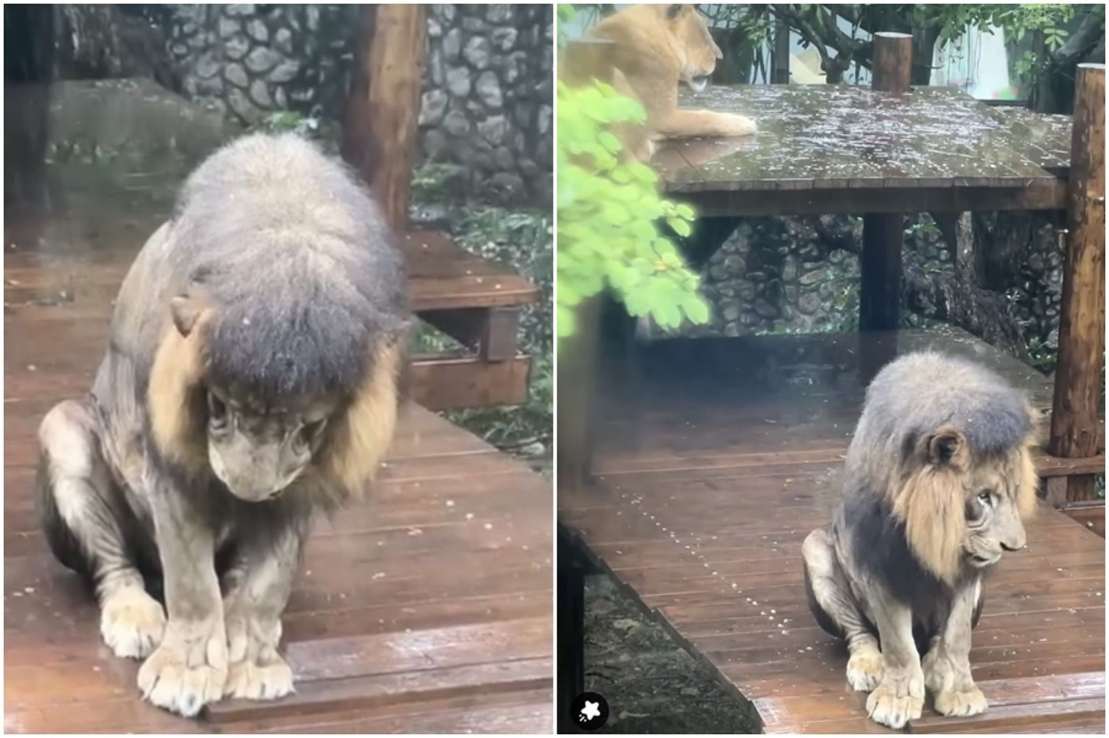 壽山動物園一隻非洲獅「小辛」近日被拍到在雨中低頭淋雨,惹人憐愛的模樣就像是做錯事被懲罰一般,園方將影片PO上臉書立刻引起網友討論。