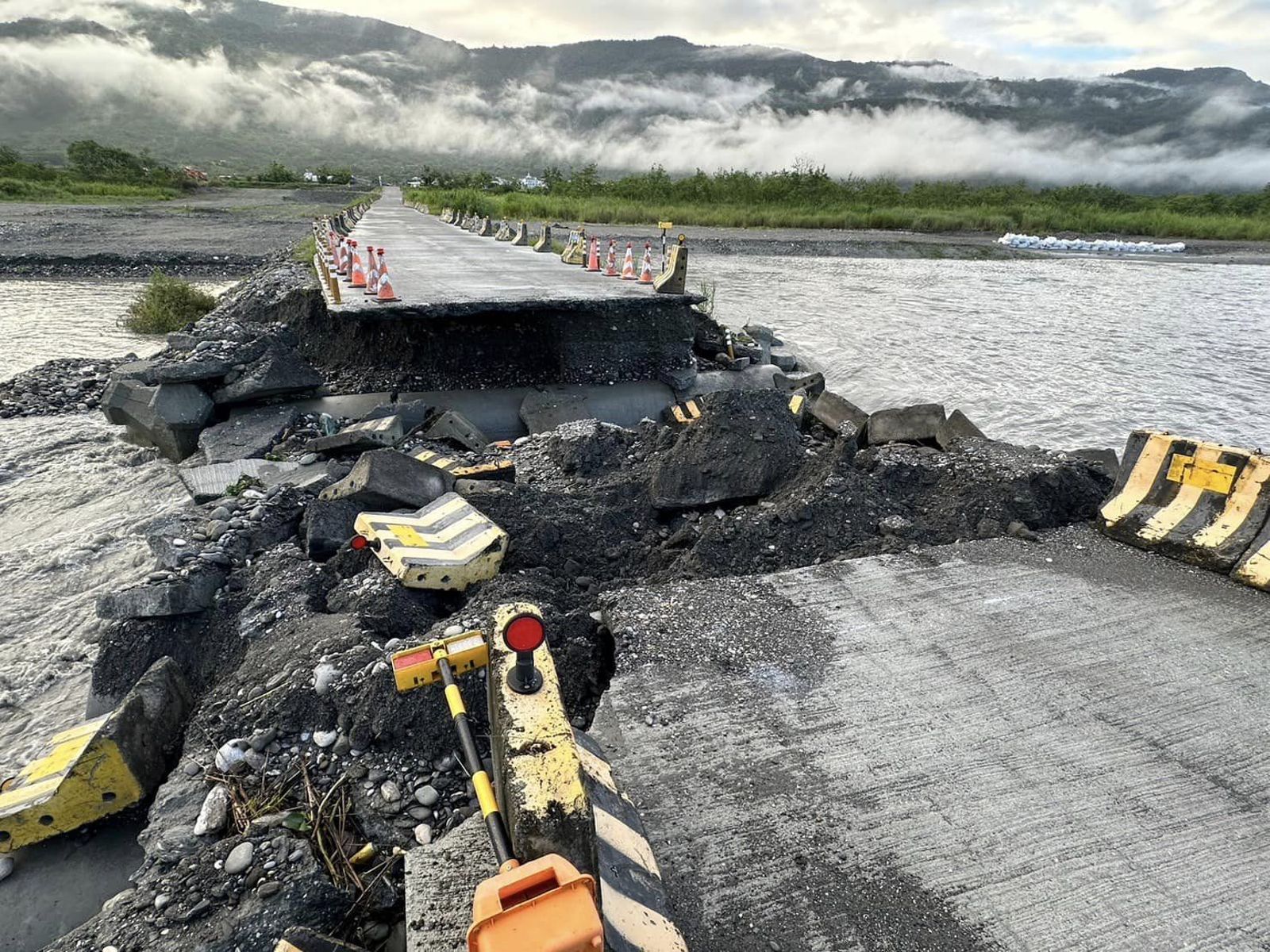 花蓮縣玉里鎮高寮大橋便道搶通不到一天又被大水沖斷。(玉里鎮公所提供)發布時間:2024.06.08 18:56 臺北時間