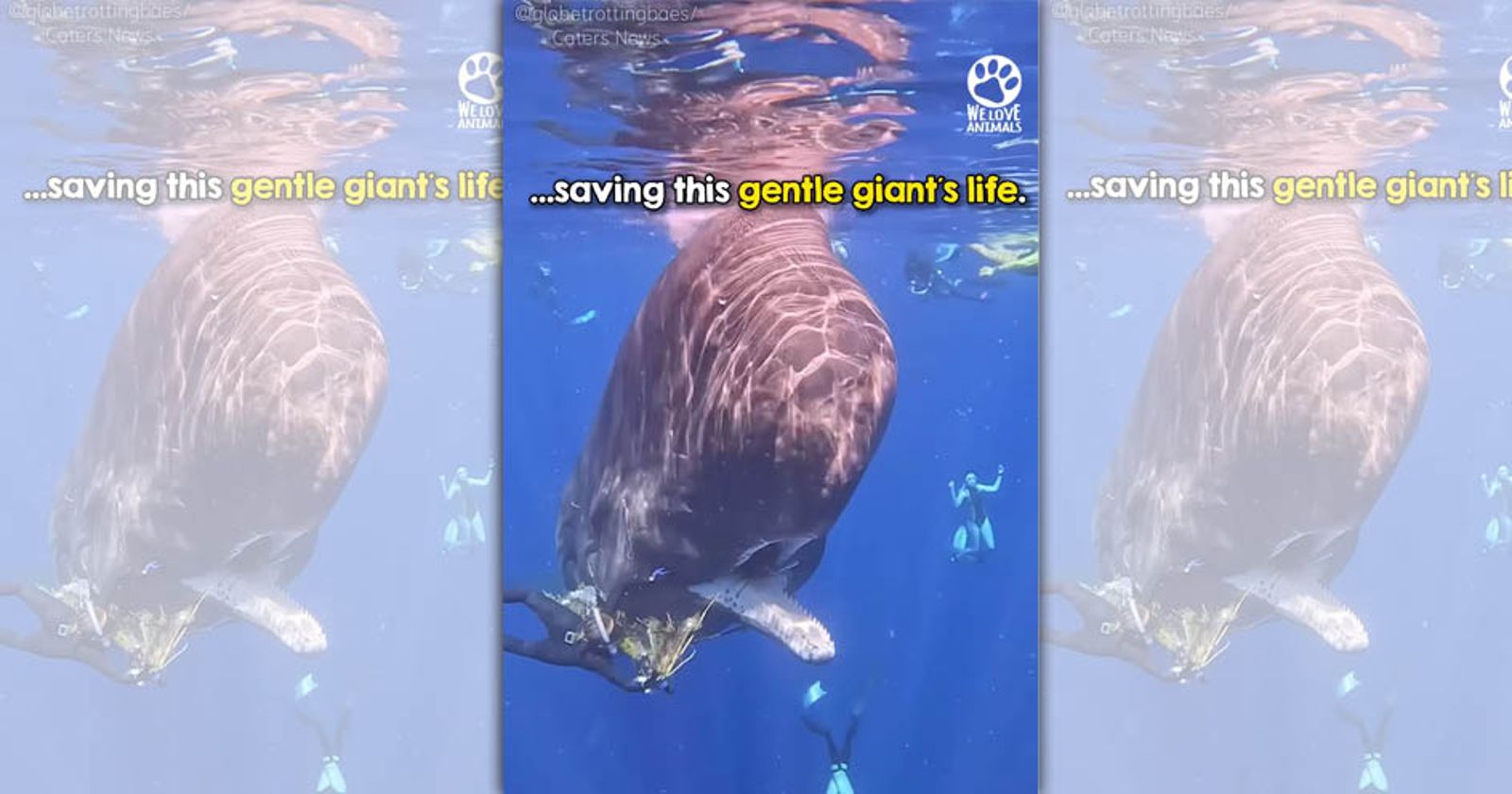 根據動保團體We Love Animals報導,日前一群潛水員在印度洋遇上一隻嘴裡卡著各種海洋垃圾的抹香鯨,抹香鯨主動游向潛水員看似在求救,其中一名潛水員緩慢地靠近後,抹香鯨保持嘴巴張開,讓潛水員能逐一將雜物取下。