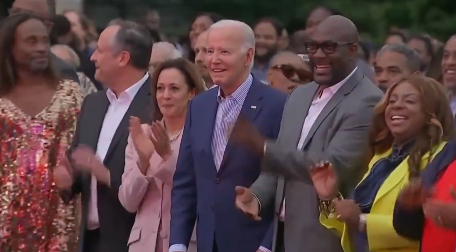 只不過最近流出的一段影片,似乎又讓大眾對拜登的認知能力打上問號。共和黨旗下的X社群帳號分享,拜登10日出席白宮「六月節」(Juneteenth)活動,當身旁眾人包括副總統賀錦麗(Kamala Harris)等人都在隨著音樂開心舞動身體,拜登雖然開口露出燦笑,但整個人卻彷彿被按下暫停鍵一般,一動也不動,和周遭開心跳舞的人群形成鮮明對比。