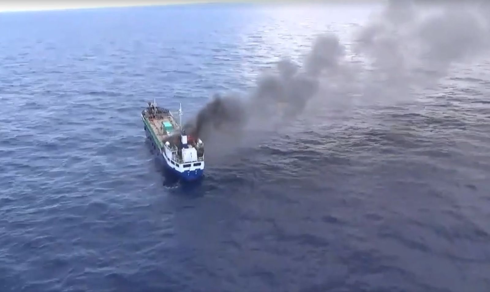 台籍貨輪輝峰號今日上午在高雄港外海爆炸起火。(翻攝空勤影像)發布時間:2024.06.12 13:27 臺北時間