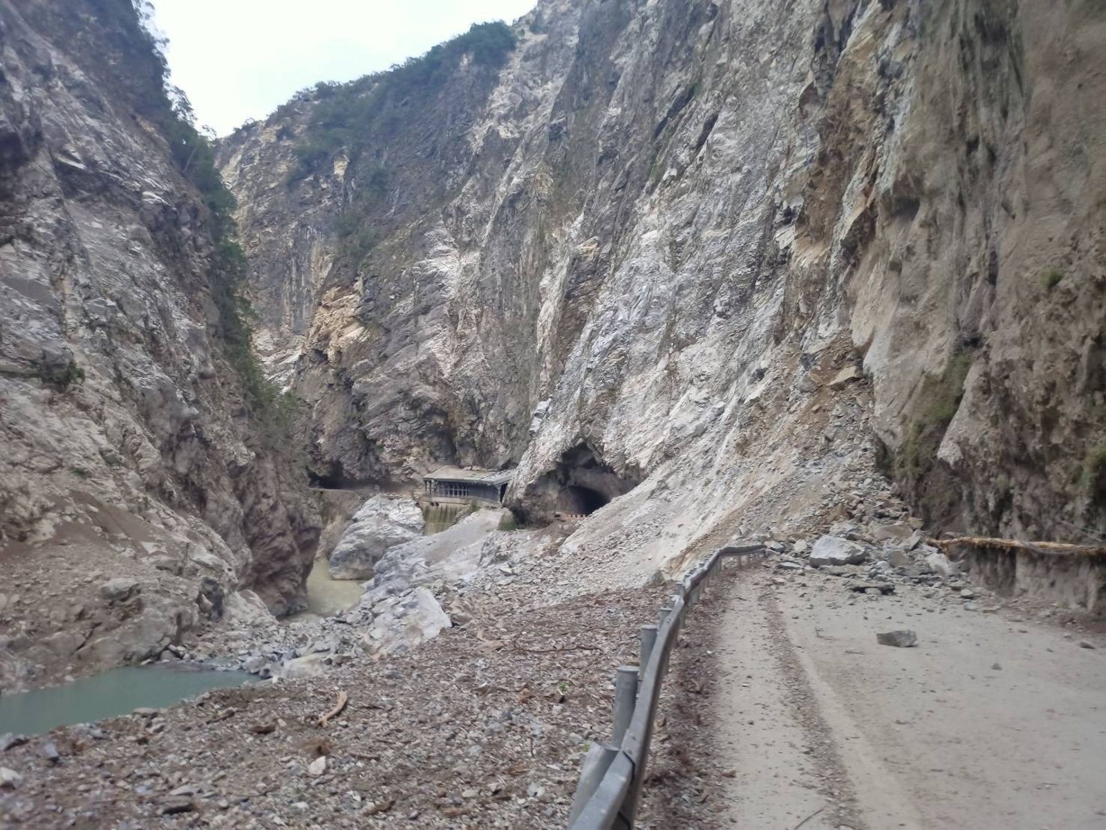 台8線174.8k錐麓隧道東口坍方雙向阻斷,公路局估明(13)日中午搶通。(公路局提供)公路局籲請用路人,山區道路地震過後及豪雨(或連續降雨)期間易坍方、落石,路況難以掌握,非必要請勿於災後進入
