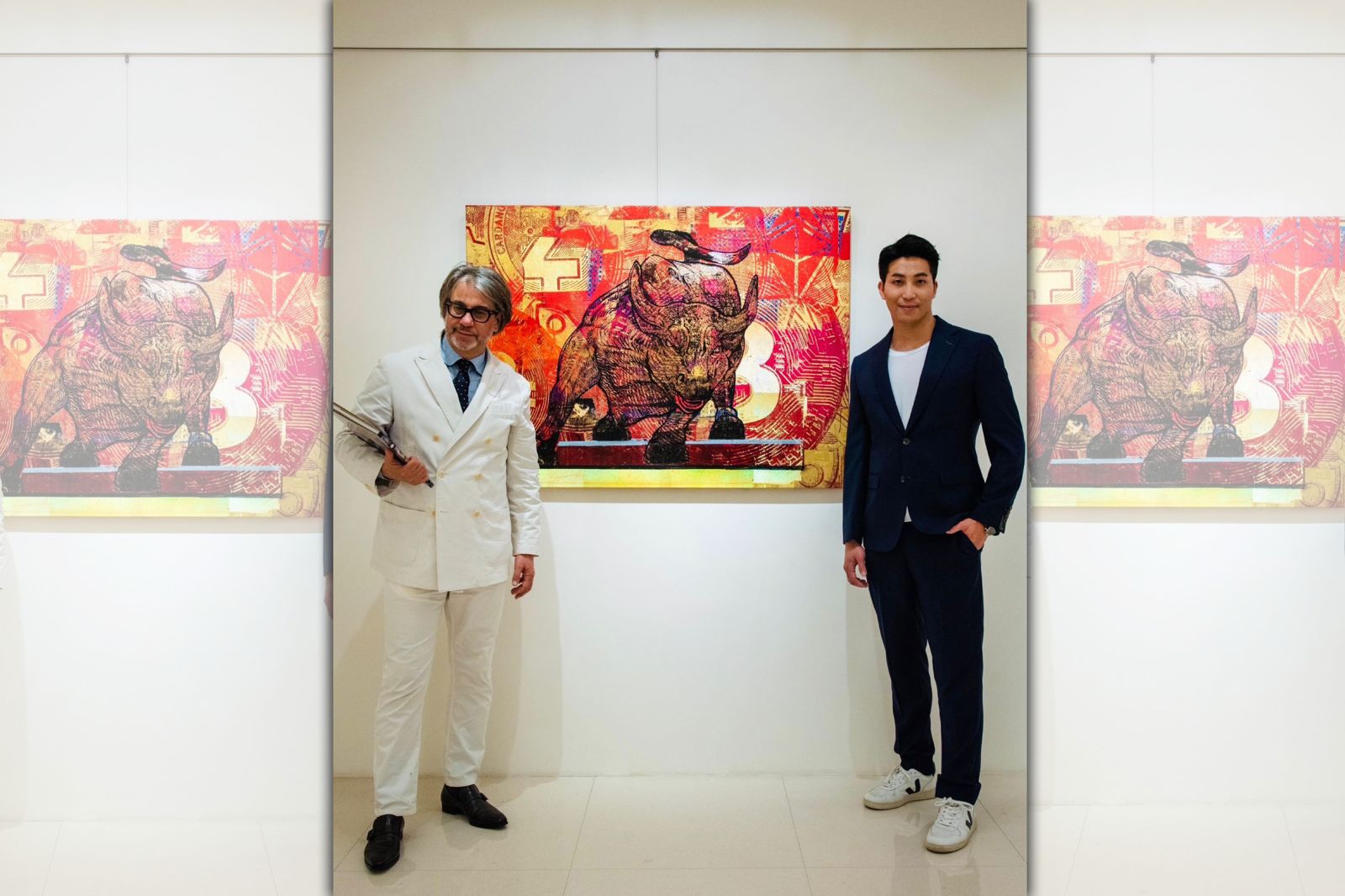 吳翔震抽空看胡本個展,他也說,自己喜歡胡本對藝術品的理念,更被展品中的「希望保有每一幅藝術品的快樂」這句話,而深深感動到。負責這次個展主辦的印象畫廊歐展榮也表示,本次展覽將呈現藝術家以獨特的視覺語彙重新詮釋貨幣內在層次的精彩作品,希望能夠帶給觀賞者震撼的視覺享饗,由於吳翔震是演員兼畫家,他也很樂意促成兩位藝術家當面交流。