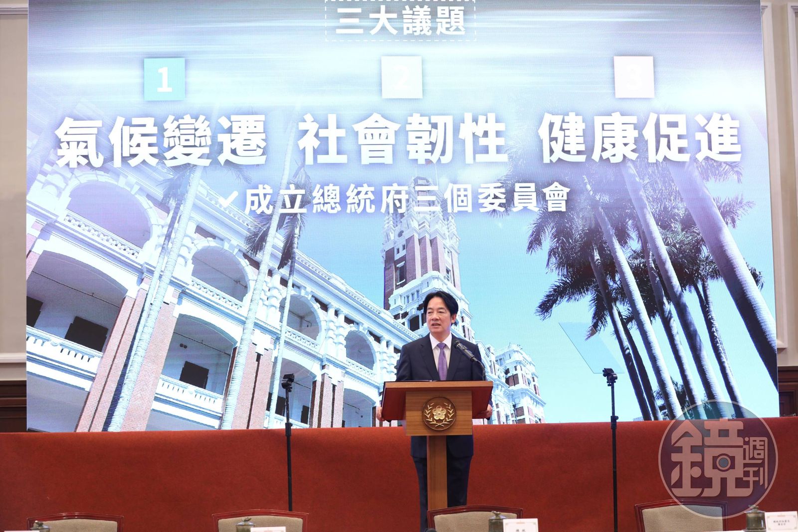因此,我將成立「國家氣候變遷對策委員會」,並由行政院鄭麗君副院長、中研院廖俊智院長、和碩聯合科技童子賢董事長擔任副召集人,要從國家視角的氣候治理,進行國際的合作。