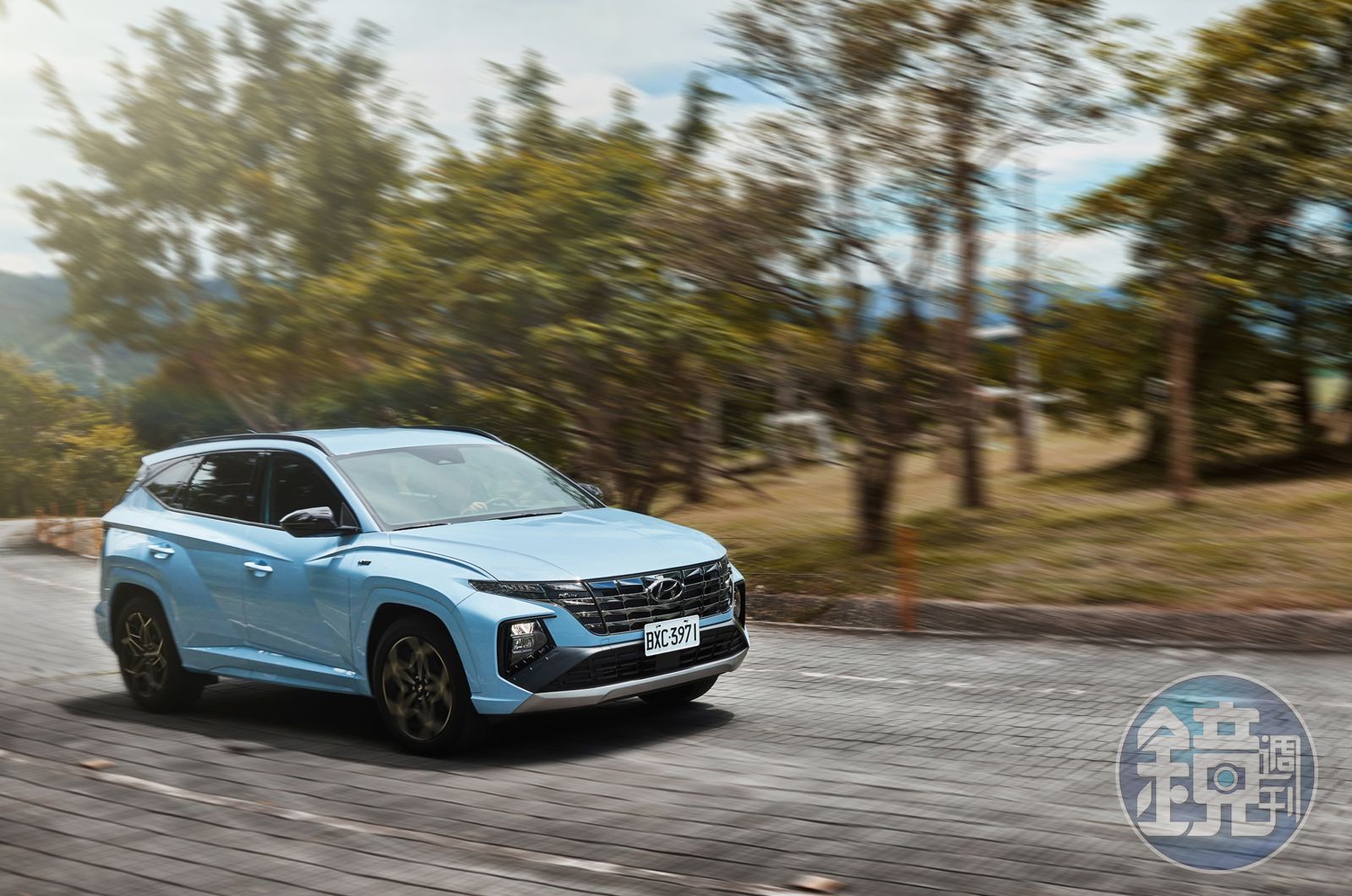 駕馭感受上,Tucson L N Line採用了由第三代N-Platform平臺打造的平整化底盤、和低重心車體結構。即便在山路上挑戰過彎極限,軟中帶硬的懸吊加上車體的高剛性,將動態行駛時的晃動感降至最低,帶來乘坐者的高度舒適與穩定。對於駕駛者而言,流暢且清晰的路感回饋和良好的動態反應,大幅提升了操控信心與樂趣,這在休旅車中,尤其是如Tucson L N Line這樣的長軸版休旅車上更顯難得。搭載的具備CVVD連續可變汽門持續系統、ITMS整合式熱能管理系統、FOMS摩擦力最佳化塗層等新技術,以及最大馬力達到180匹並且在1,500rpm即可全輸出27公斤米最大扭力的Smartstream 1.6渦輪增壓缸內直噴引擎,搭配換檔效率如電光石火般的第二代7速DCT雙離合器自手排變速箱,即使滿載在林口坡超車,油門一踩強勁動力瞬間湧現,加速毫無懸念、暢快無比。