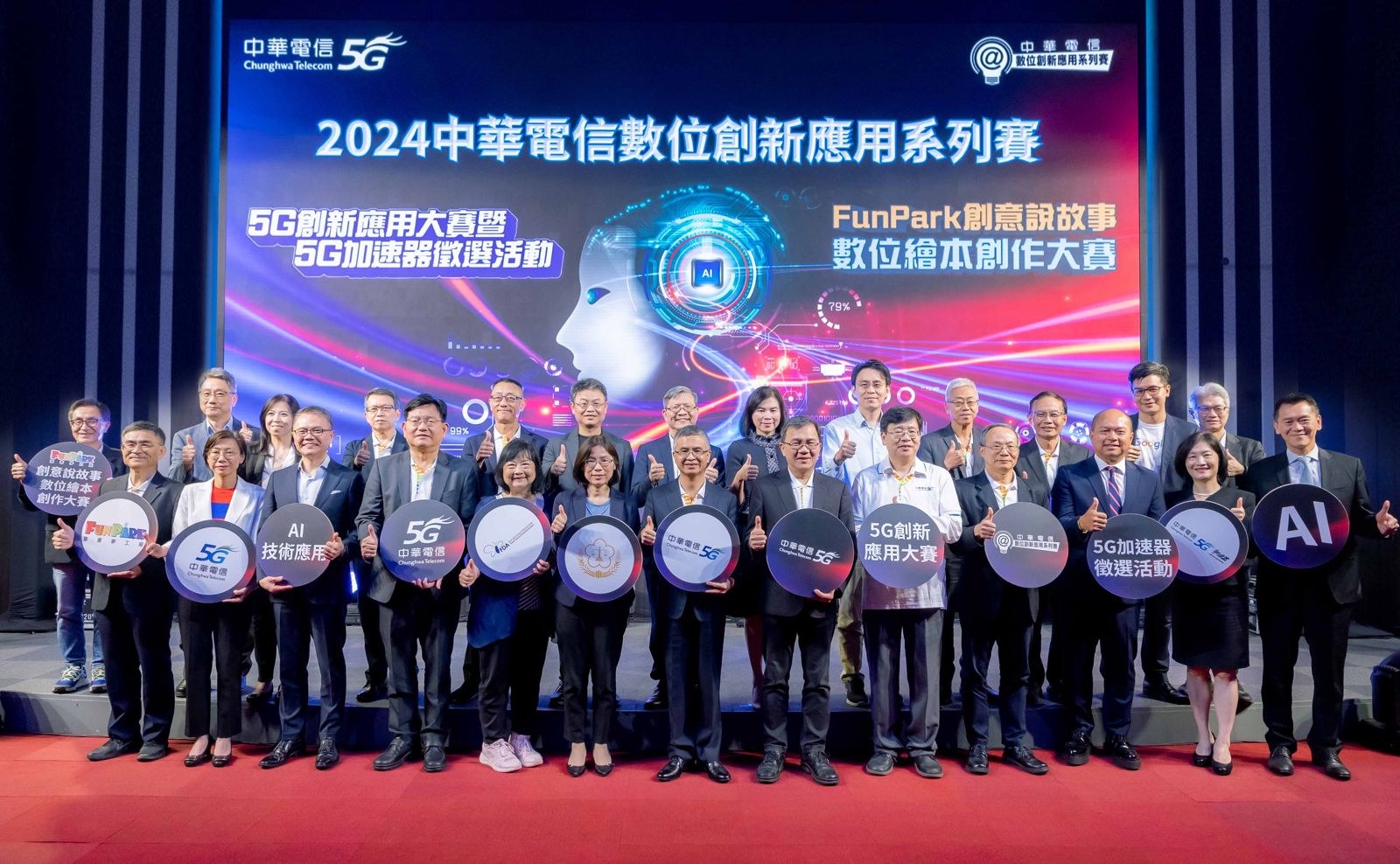 中華電信郭水義董事長表示:「中華電信一向致力於推廣數位創新應用,透過賽事跨領域激盪不同的創意火花,並結合產官學界量能,扶植產業創新及培育新創人才。」同時,董事長強調:「隨著AI時代來臨,今年著重以5G及AI結合的創新應用,期待激發數位人才的創意,並善用數位科技創造全新應用內容,從鼓勵創意創新,到商機媒合、創業培育、加速商機落地等,發掘更多優秀的作品。」期許未來中華電信可以為民眾帶來更多的創新成果和服務,展現台灣創意能量。