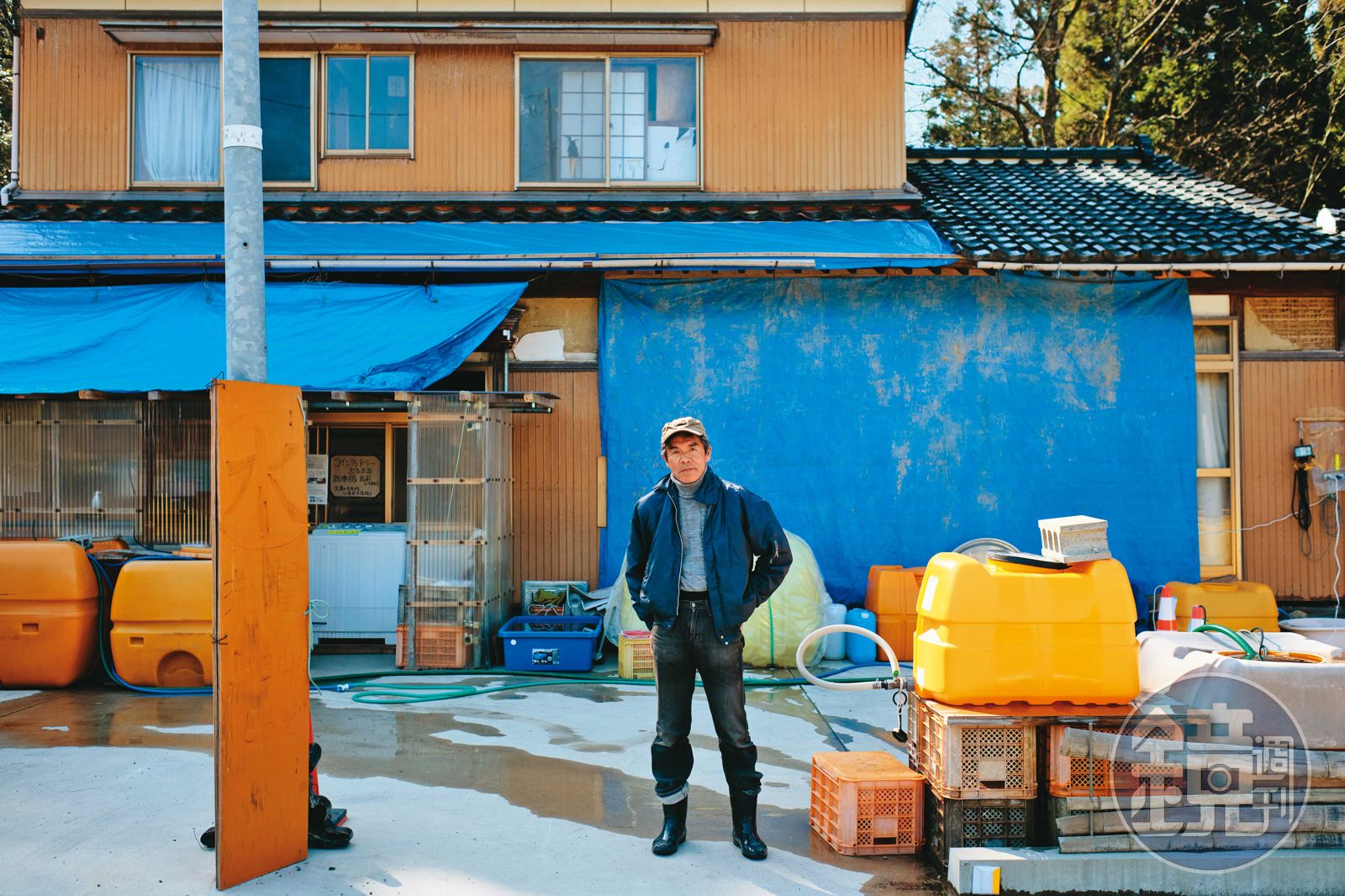 來到珠洲市民小谷內毅的家,門口5台洗衣機轟轟作響,64歲的小谷內毅一身務農打扮,濃眉大眼,豪爽地迎接我們,說明現在市內許多人家持續停水,民間團體自外地募得洗衣機,他整理家中後山40年沒用的水路,搭建水管引水下山,供鄰居免費洗衣。事實上他自己也是地震受災戶,房子屋簷瓦片在地震中全毀,礙於當地修繕人力不足,他和家人在車上睡了一個月,最後自行爬上屋頂鋪上防水膠布,才勉強搬回屋內。