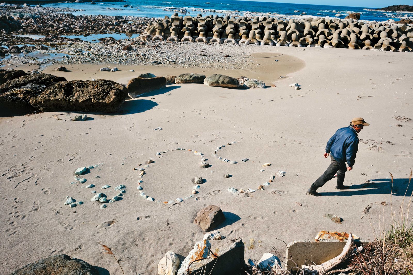 高屋的沙灘上,有人用石頭排出「SOS」字樣,彷彿向外求援。高屋震後道路坍方嚴重,外援無法進入,小谷內毅曾騎著機車往返珠洲和高屋運送汽油,讓居民能在停電的寒冬中發動汽車引擎取暖。北野進感慨地看著空無一人的港灣:「知道這裡之前是什麼樣子的人,看到現在的景象,感觸都會很深吧…如果核電廠當時蓋在這裡,真不曉得會發生什麼事。」