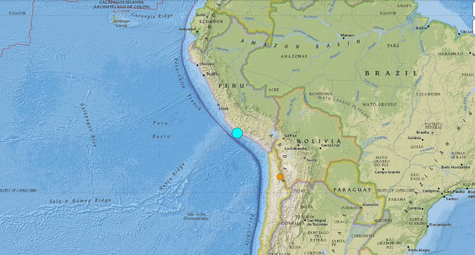 地震的震中位於祕魯南部的阿蒂基帕(Atiquipa)以西約8公里(5英里),距離秘魯首都利馬約600公里。