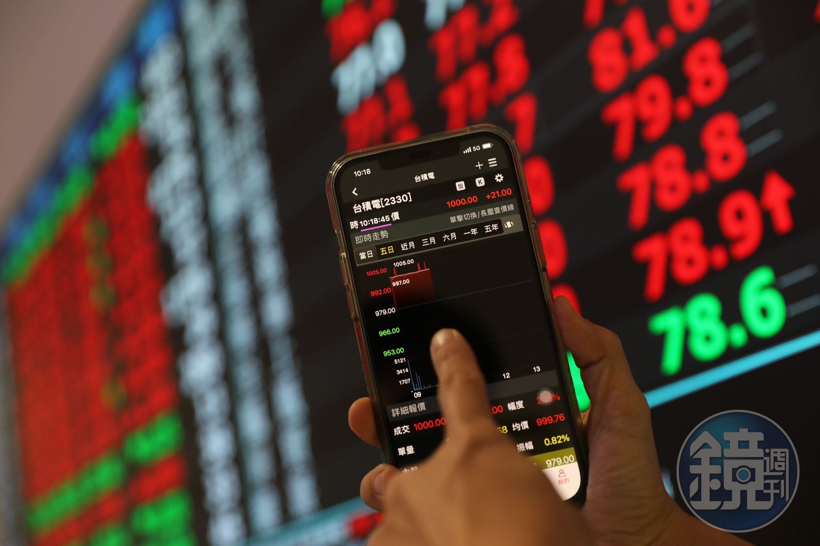 台積電今天開盤股價就漲上1,000元,隨後又迅速漲上1,005元,創下歷史新高點,台股加權指數也跟著上漲至23,541點,同樣也創下台股新高點。