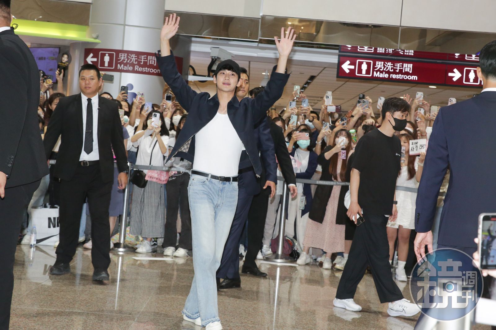 今由仁川機場出發,金秀賢沿路接收粉絲的小卡和信件,不過他步伐超快,從機場外過馬路到進關僅花2分鐘時間,讓一路跟隨他直播的韓媒都大嘆:「走太快了吧。」金秀賢搭乘的班機抵達台灣的時間比預定稍晚,但他仍按照原定時間出現在大家面前,彷彿是不想讓為他前來接機的粉絲們等太久。